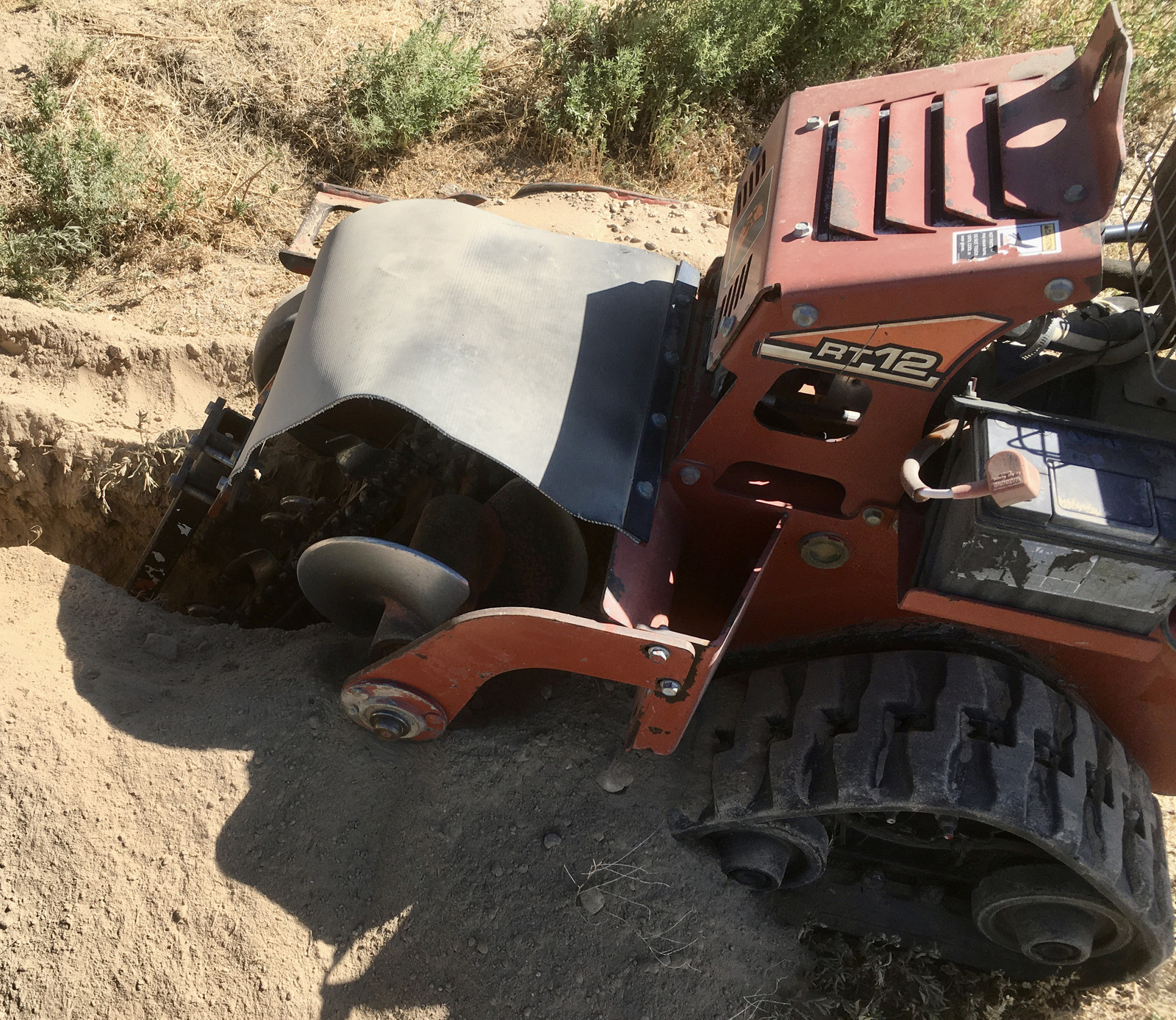 This looks like a really big trencher, right? Tracked, big cutting blade, and clearly will do some serious digging! Actually, it wasn’t big enough. Not by far.