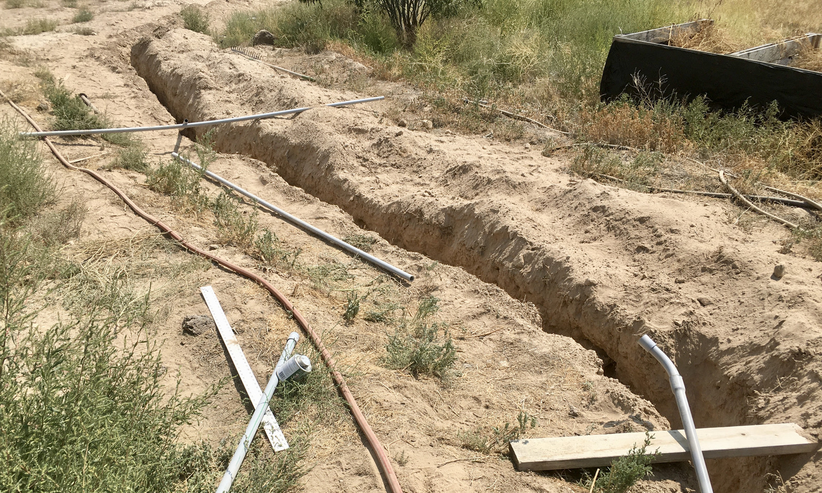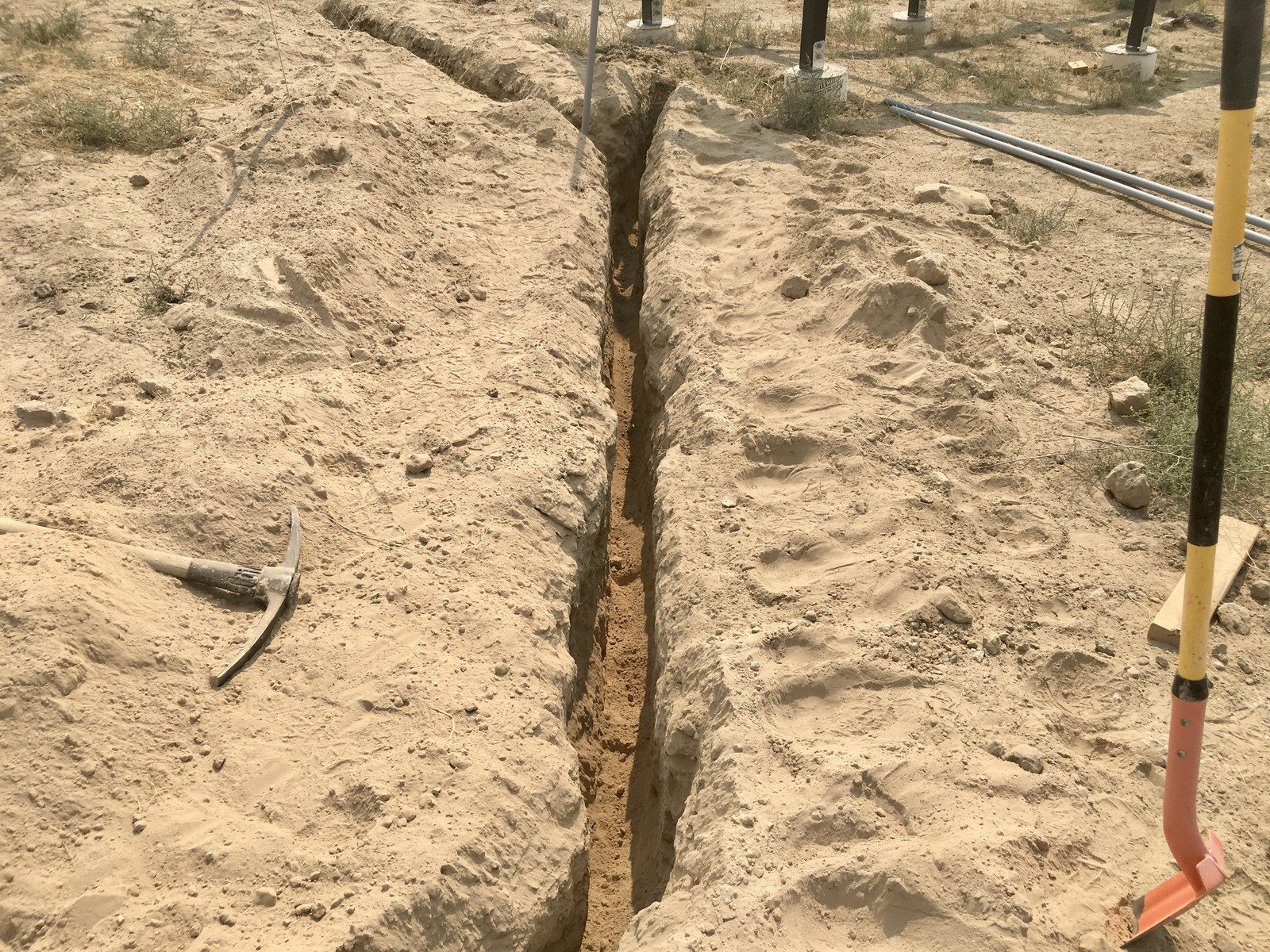 Try not to time your trenching for the heat of the summer. It turns out that an ideal spot for solar is actually really, really sunny!