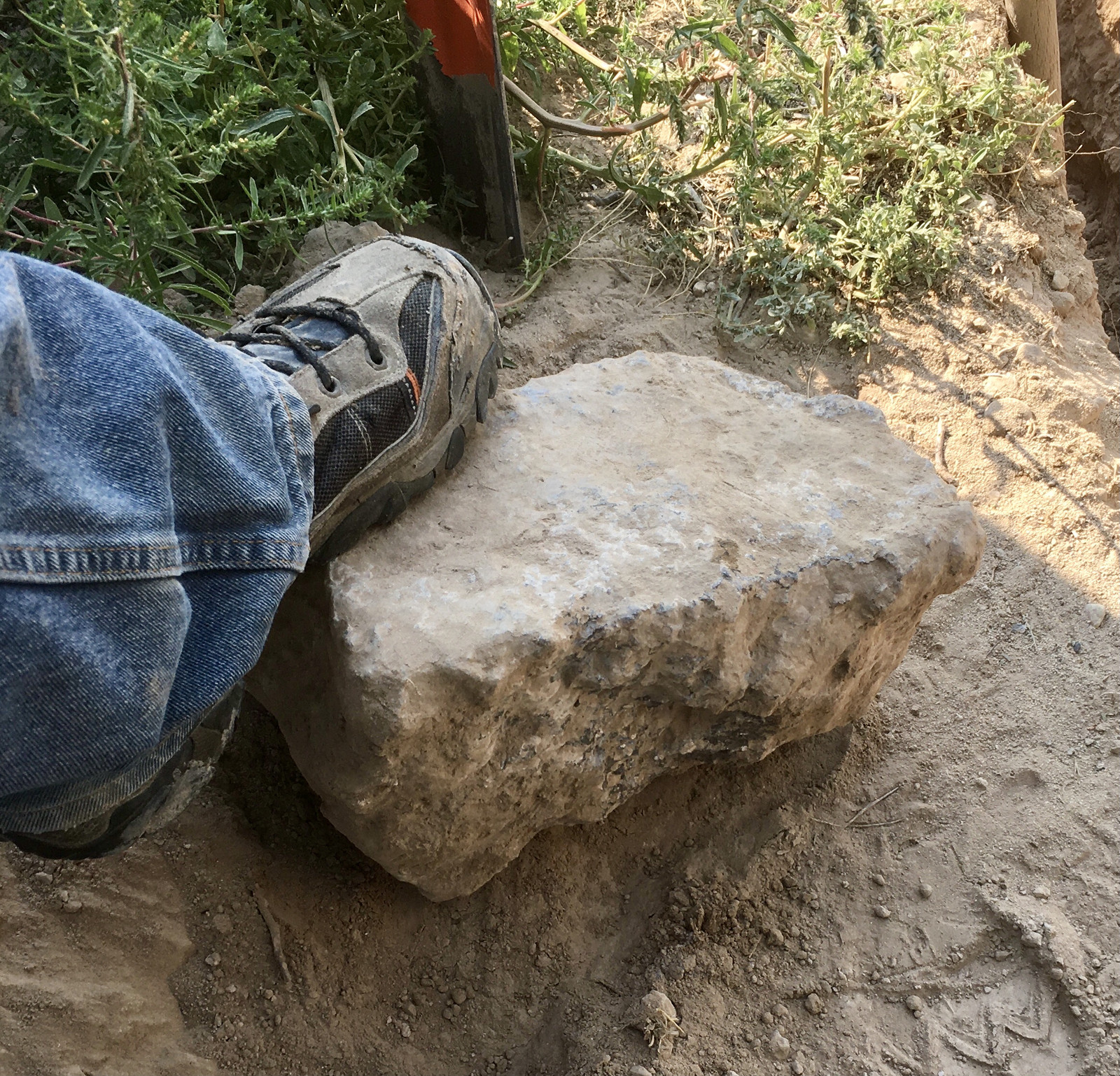 One of my fears throughout the trenching was finding Very Large Rocks down in the trench that I couldn’t dig out. I found and removed plenty of rocks, but only one was large enough to really be a pain - this one. It was up near the house, started at least a foot down, and took easily an hour of digging and swinging and prying to remove. I’ve removed a lot of rocks from the property, and rocks down in trenches follow the same rules as any other: If you can get even a tiny bit of movement, you can remove the rock.