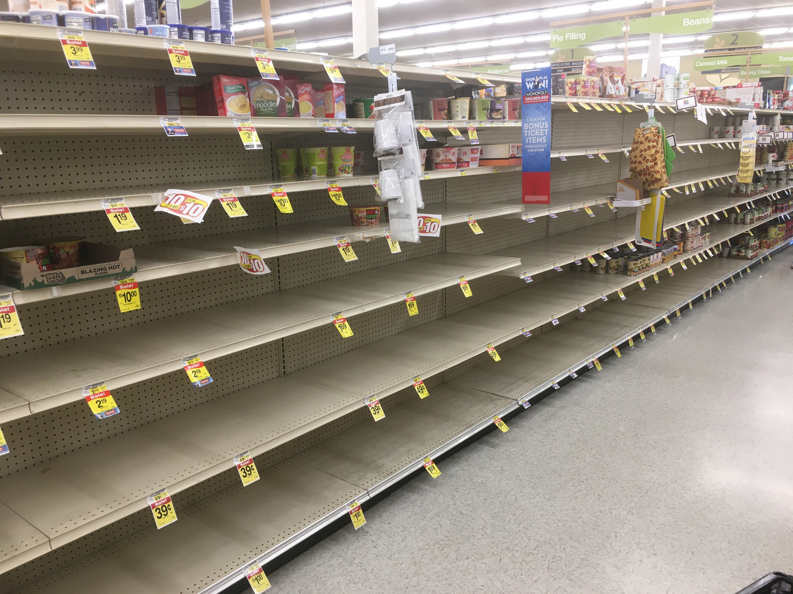 And things like “your grocery store” suddenly go empty. Supply chain issues tend to trigger panic buying (don’t believe me? Wait for the next blizzard in the southeast). Panic buying then leads to more panic buying when any supplies show up (see… well, really, most of the last decade and a half of sport shooter ammo), and things just get weird.