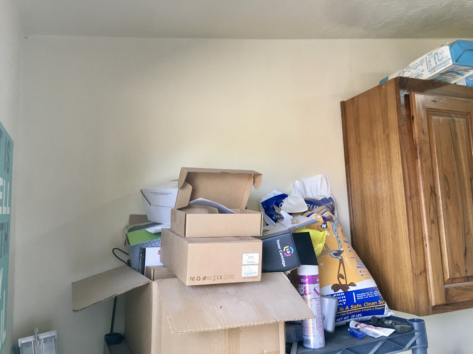 And it doesn’t go out to the wall either. Some of the stuff stored over there was fine, but it can be stored elsewhere (say, hanging in the shipping container). It doesn’t need to be in the house anymore.