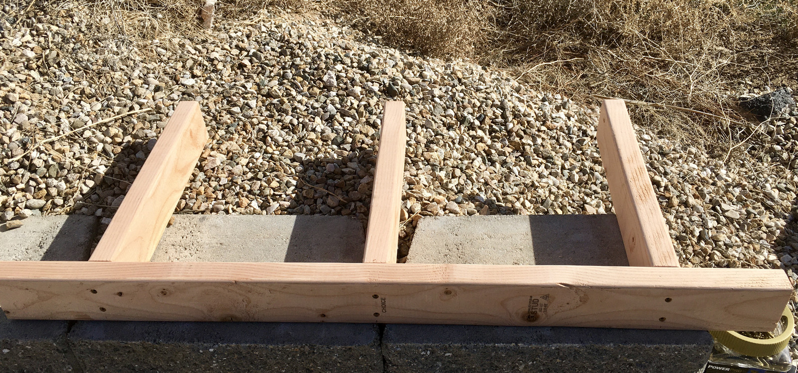 With a bit more cutting and screwing (I tend to pre-drill the 2x4s for my shelves - it helps prevent cracking and also makes it easier for the screw to pull the crossmembers tightly against the end pieces), I’ve got a bunch of lumber that will turn into a shelf.