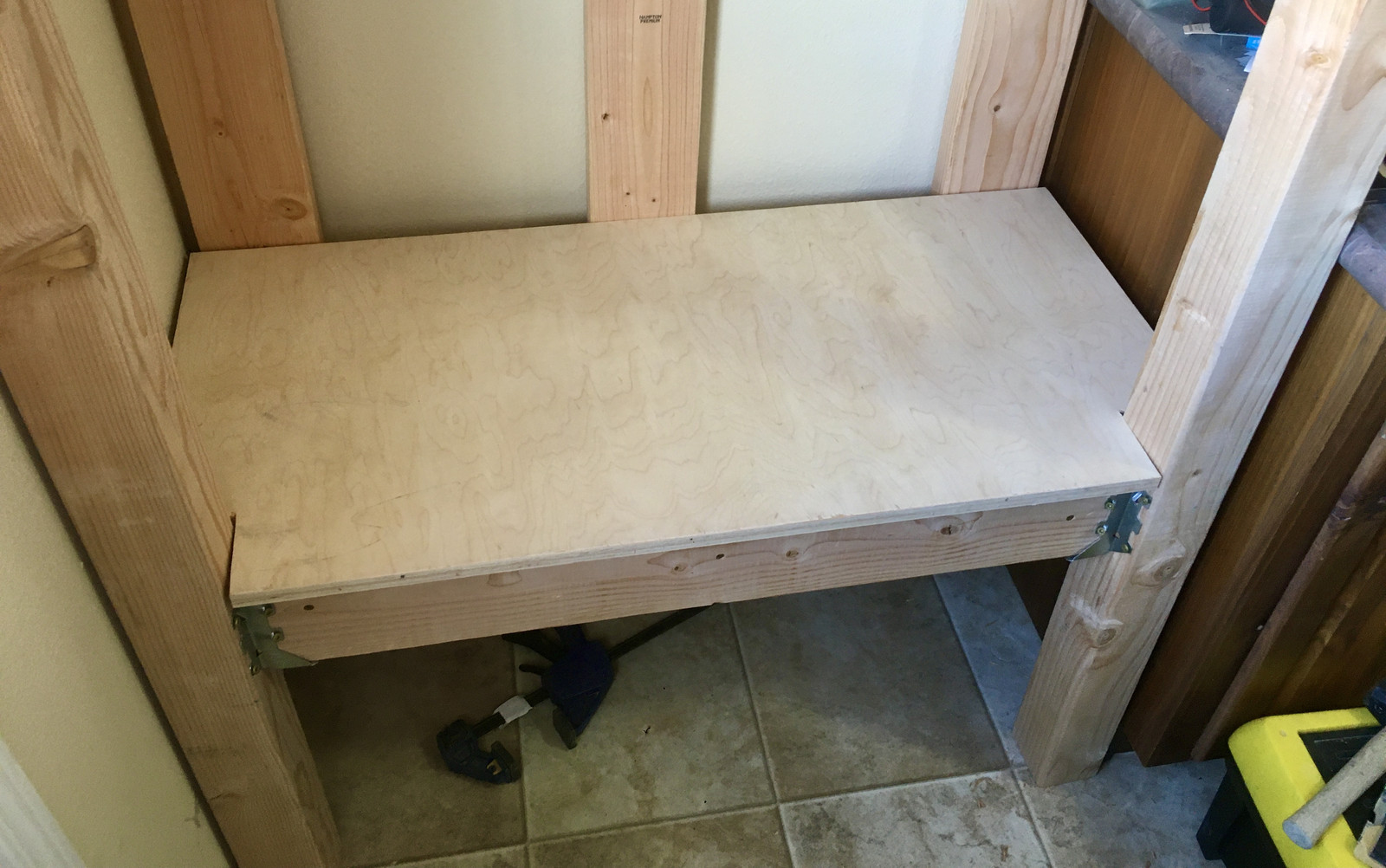 Slip the shelf in place, and done! These aren’t screwed down because there exists no good reason to, and I might want to remove them later for some urethane or paint if needed.
