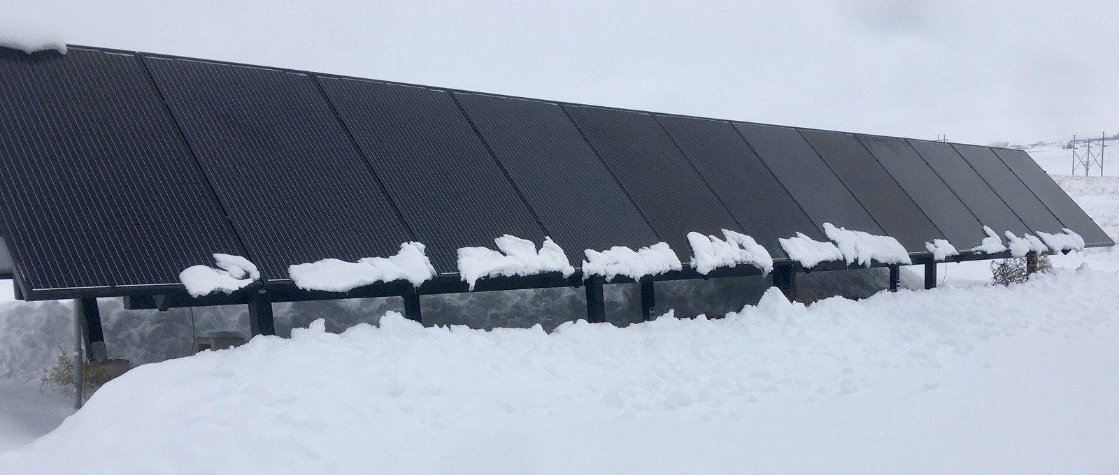 Before I move on, one question I’ve had somewhat often about solar is, “How does it shed snow?” This is one of my banks, at a 45 degree angle, on a very grey and snowy day. It sheds nicely, and as soon as the sun comes out, the rest slumps off into a nice pile.
