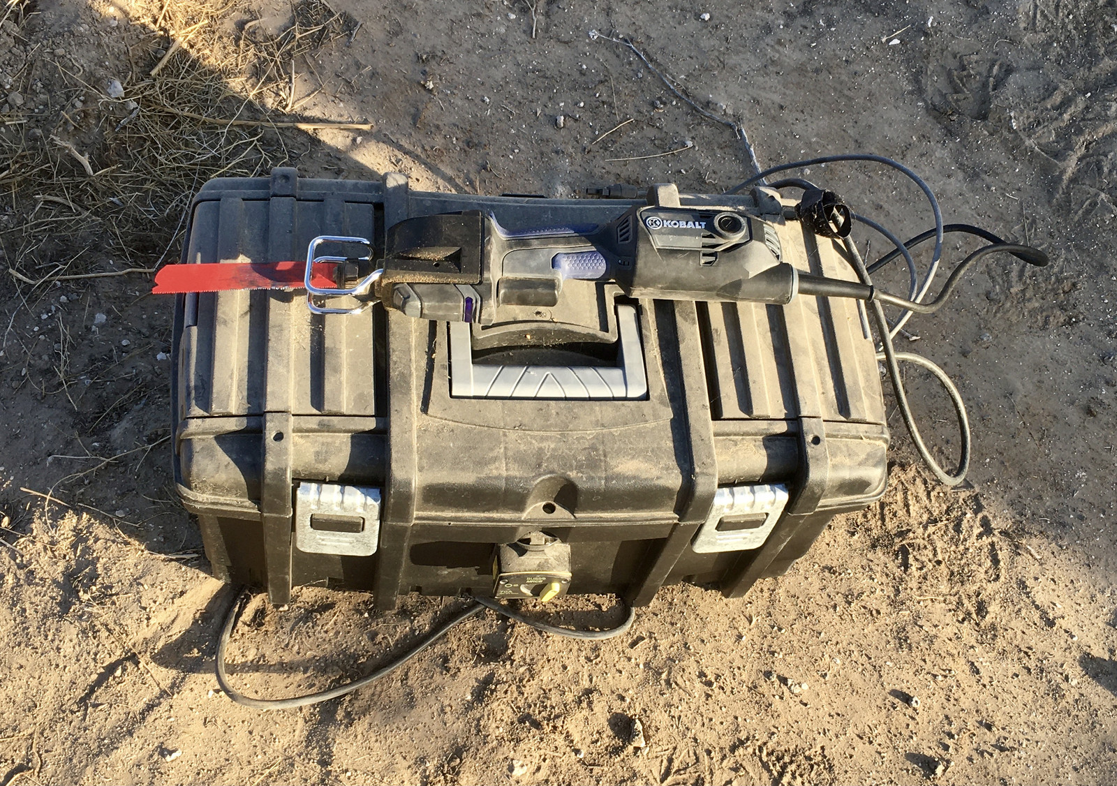 I could have run a chain of extension cords out, but… why? I’ve got a perfectly good power toolbox I can use for this sort of thing!