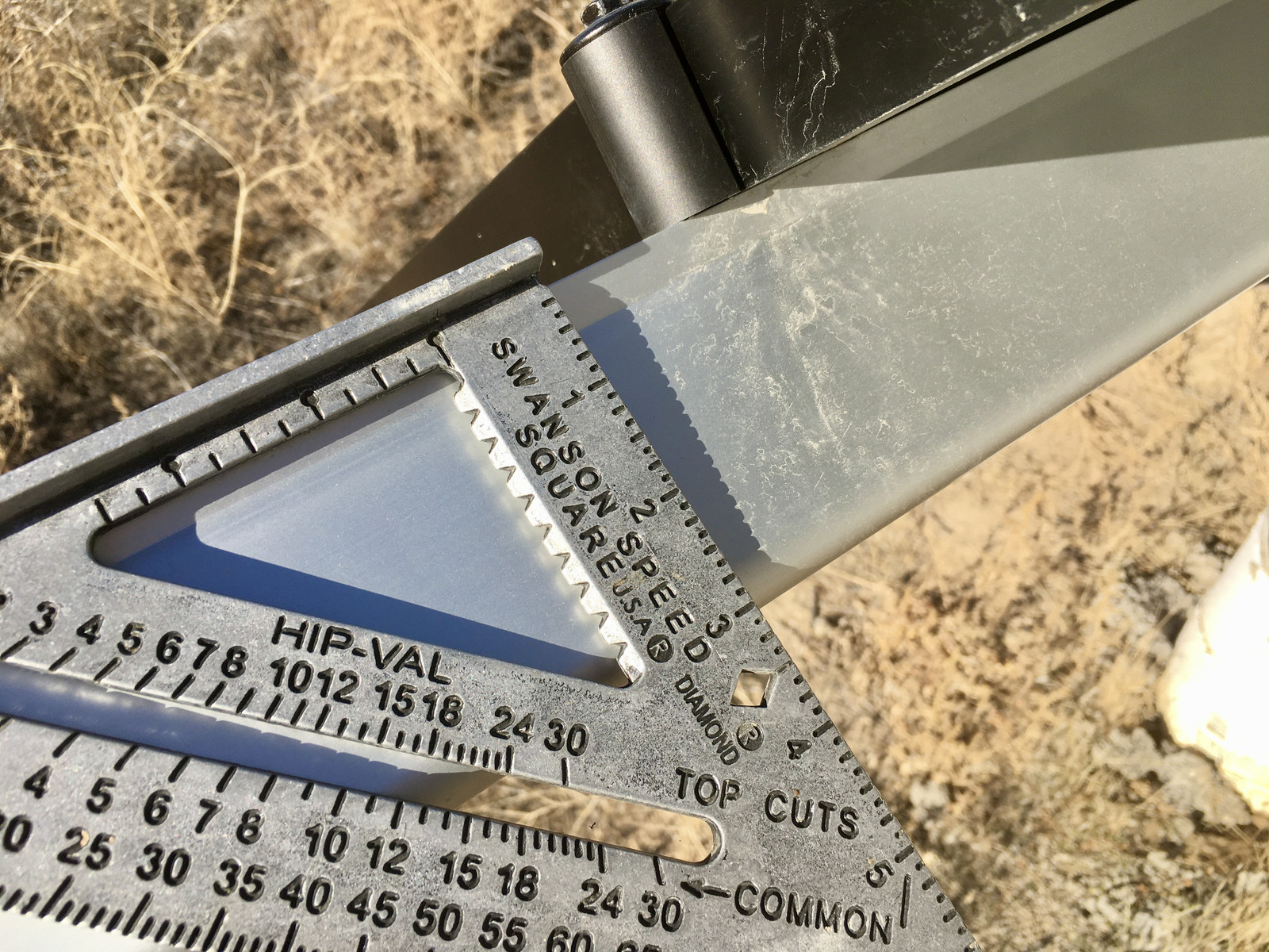 The main challenge is to get the panels actually aligned with the rails well enough that there’s no major rise or drop compared to the rails over the course of the run. I tried a few methods over all the strings, and found that while a square would get you close, the right answer is measuring from the bottom of the panels to the rail. As long as the rails are straight (which mine are), this gets you the most accurate picture of the rise/fall of your strings over the rail. Put one panel up, measure it on both sides. Put another panel or two up, measure it, and if it’s within a eighth inch or so, you’re fine. Obviously, roof mount panels have different tolerances, but for my frames, it would be obvious if they were badly misaligned.