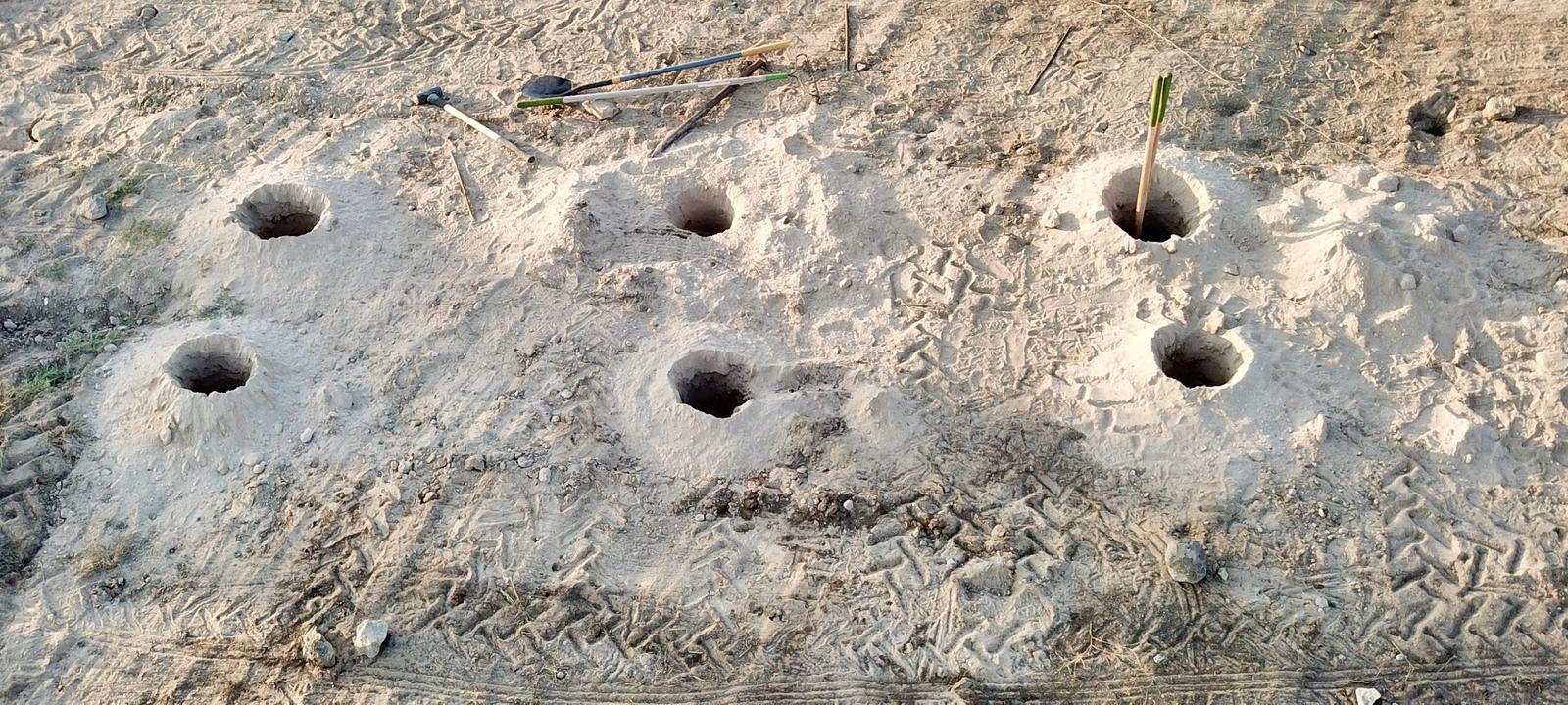 With all six holes dug, it looks like a giant pissed off gopher has come through my property dead set on proving it knows geometry. The dust is a very fine powder as it comes out, and has reminded more than one person of Clarke’s “A Fall of Moondust.”