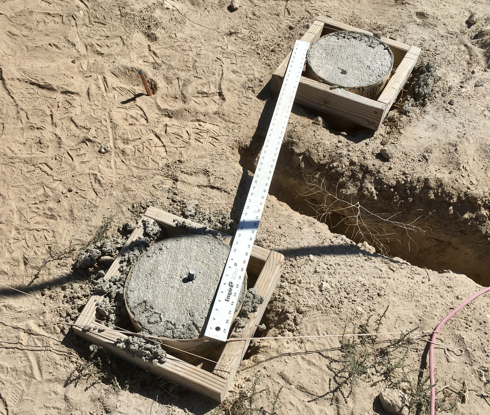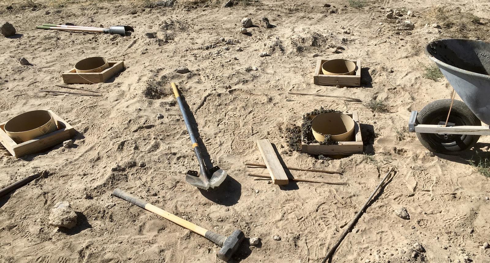 Unlike the main frame holes, these didn’t require a jackhammer. I hit some hardpan, but it was thin, shallow, and I was able to break it up with nothing more than a metal rod and a sledgehammer. Short spikes of rebar work great for shallow hardpan. And, like before, once I got through the hardpan, it was fairly easy digging.