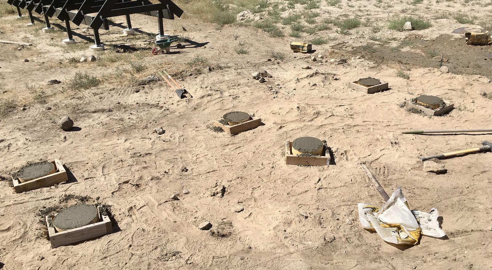 Once the concrete is set, rent a hammer drill, punch holes in, and epoxy the bolts in. I got smart, though - instead of driving the ground rods with a sledgehammer, I paid the extra few dollars, rented a ground rod driving bit, and drove the ground rods for this set of panels with the hammer drill! SO much easier than using a sledgehammer for the bulk of it - though, with our underground rocks, I still had to use the sledgehammer a bit to drive the rods through some tough spots.