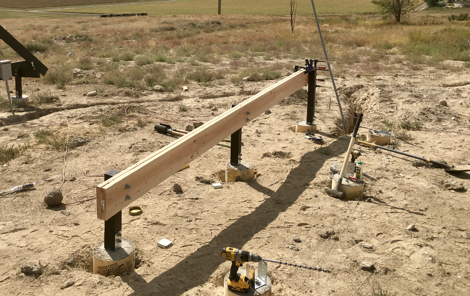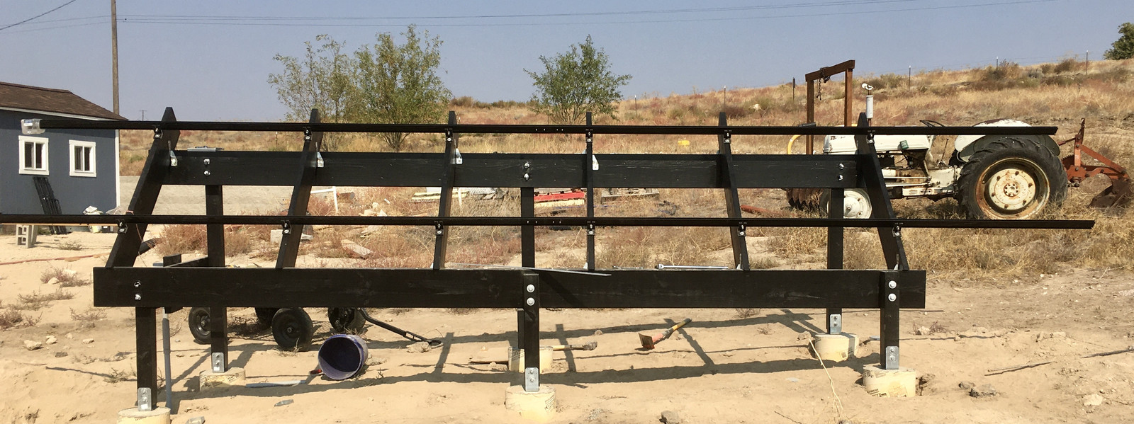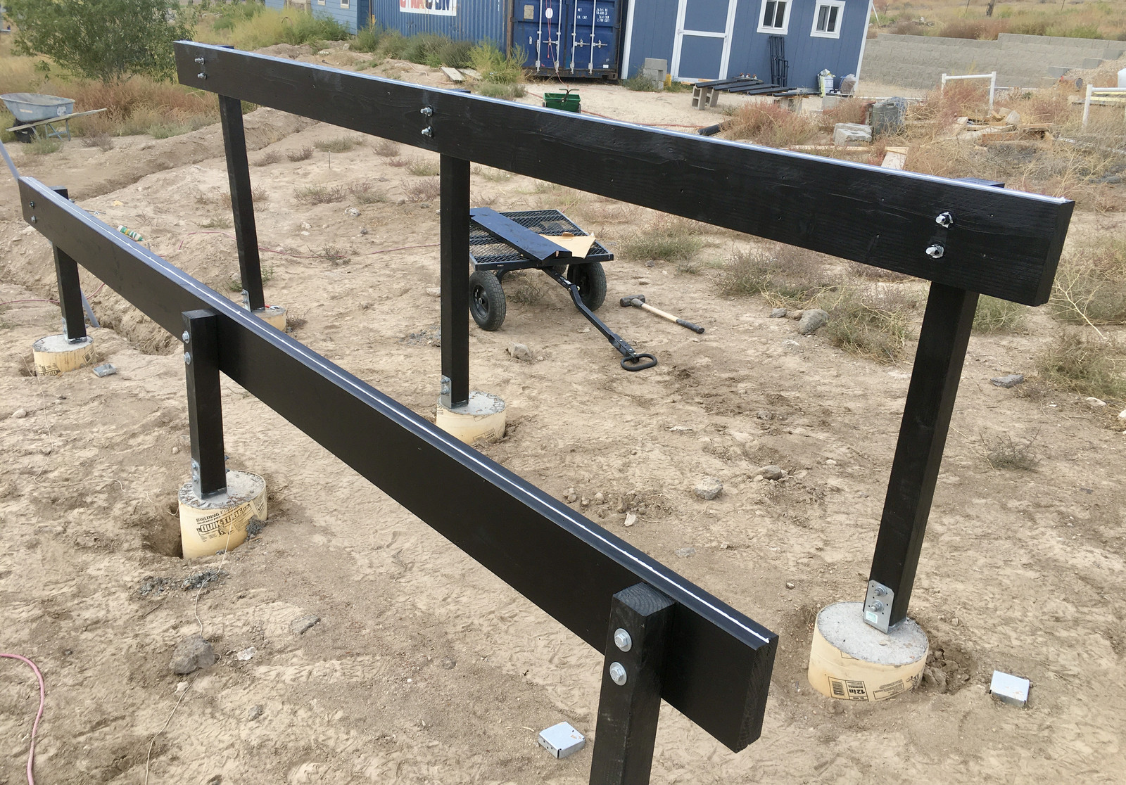 I knew that the “high” end would need some added support to keep it from swinging back and forth, so I added a couple crossmembers between the front and rear uprights to add strength. After adding those two, the structure didn’t move, so I decided the far end didn’t really need one. It would have been down at the very bottom. You may notice a trench coming up to the end - that’s for the conduit!