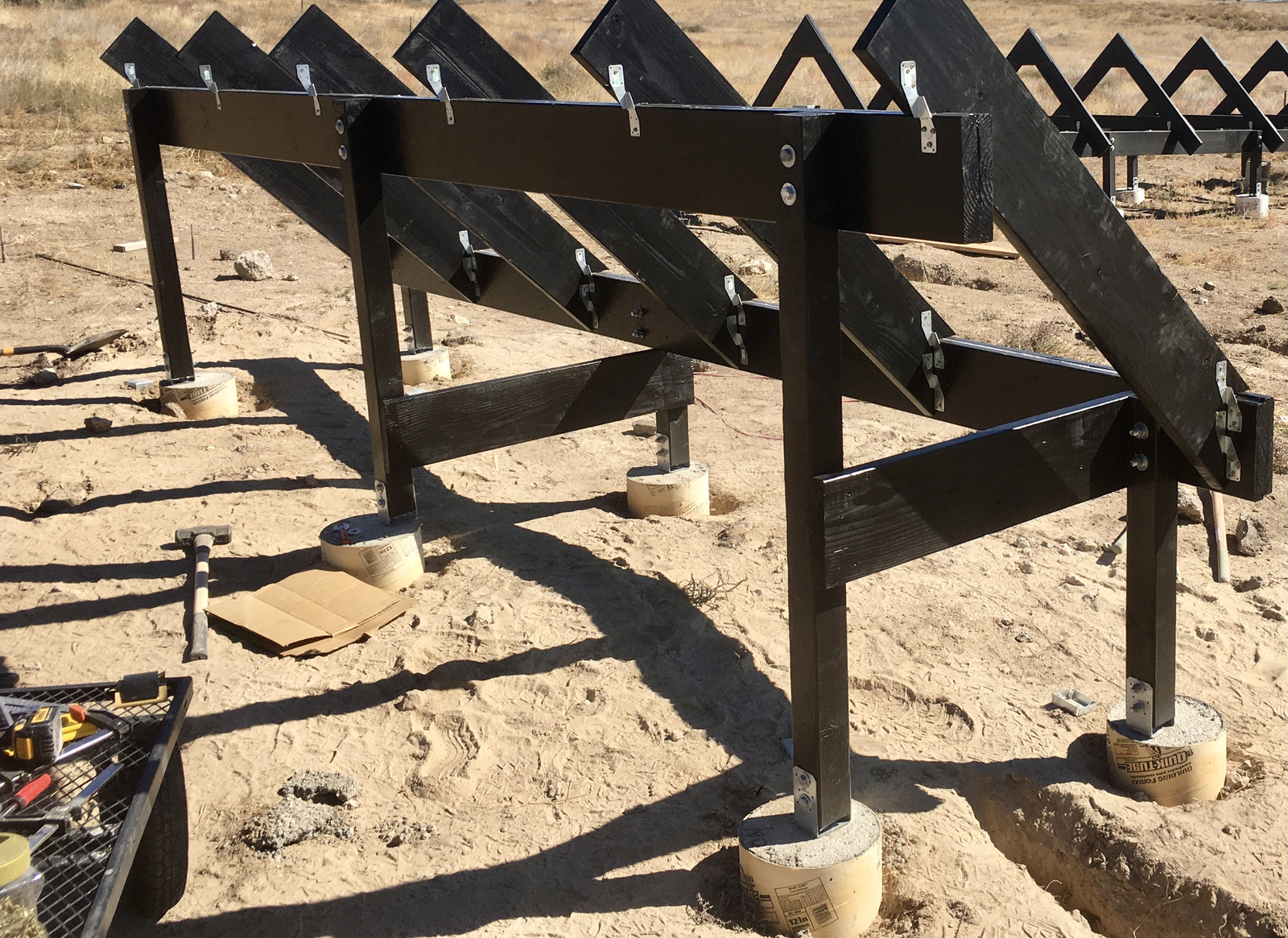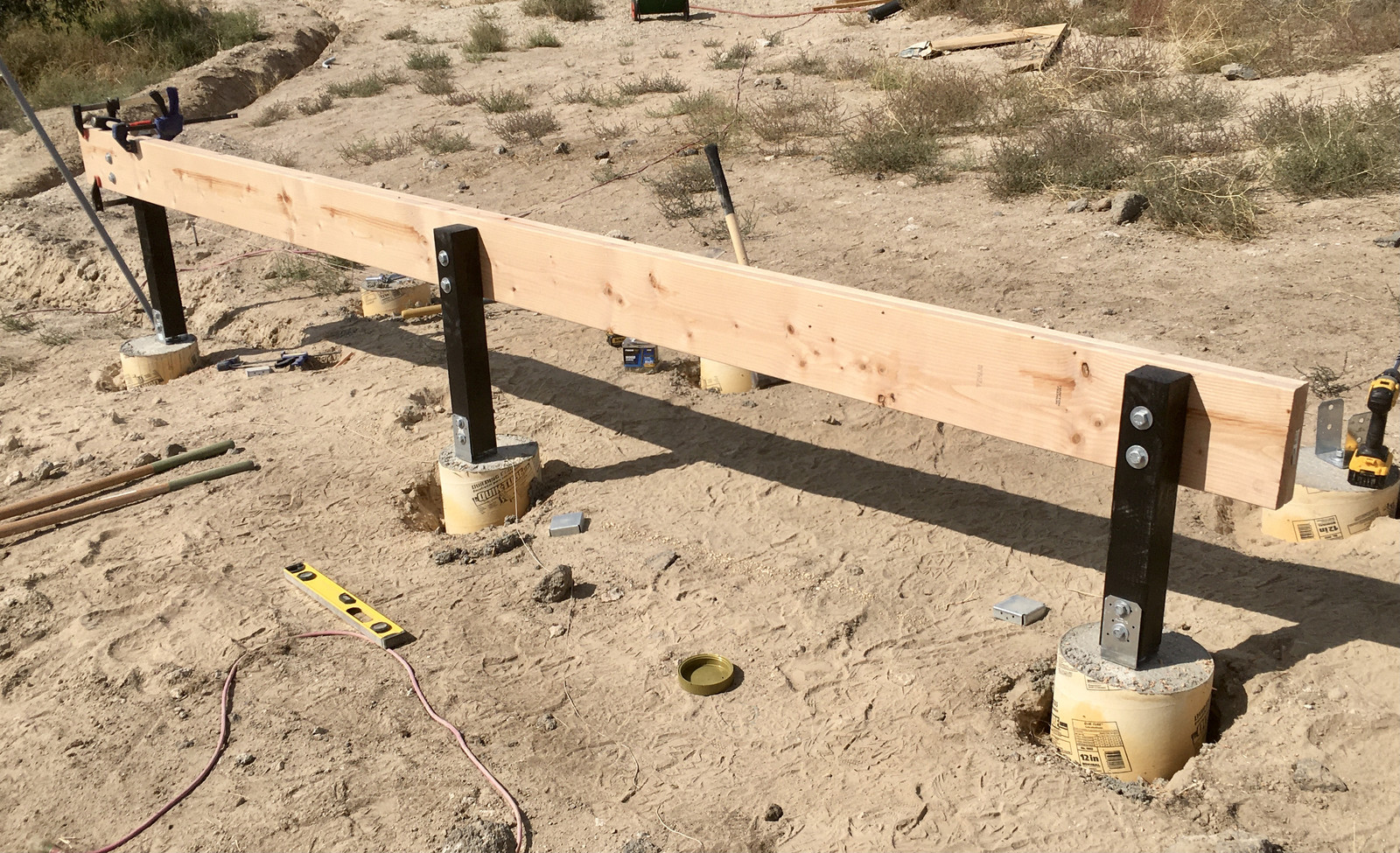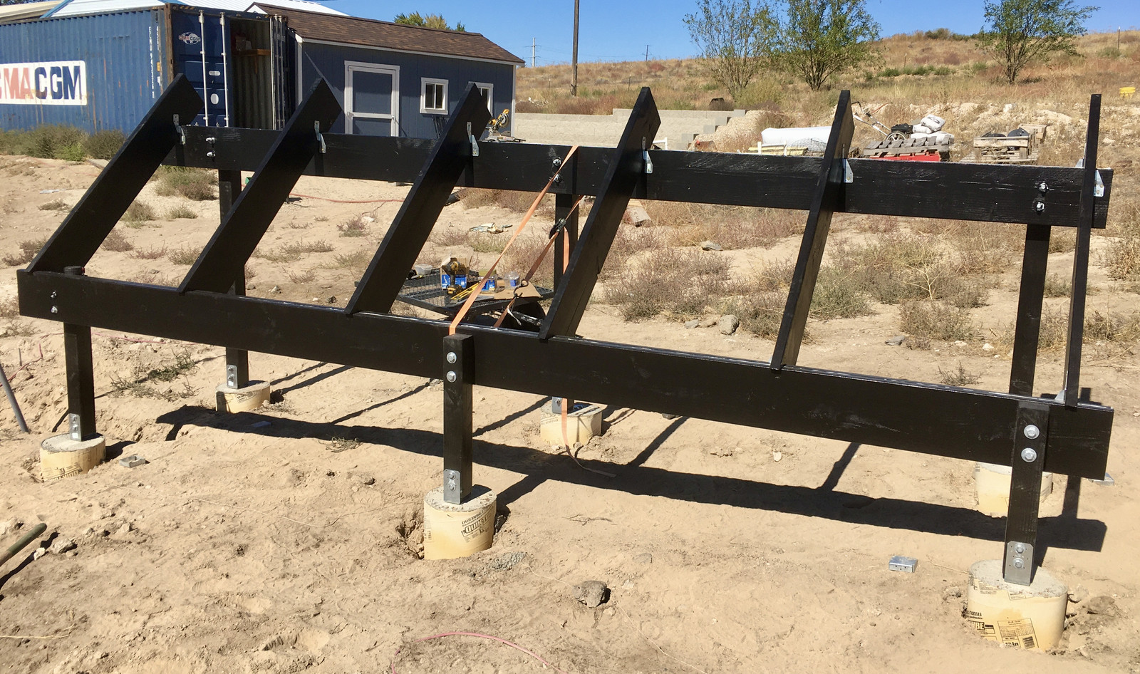 I knew that the “high” end would need some added support to keep it from swinging back and forth, so I added a couple crossmembers between the front and rear uprights to add strength. After adding those two, the structure didn’t move, so I decided the far end didn’t really need one. It would have been down at the very bottom. You may notice a trench coming up to the end - that’s for the conduit!