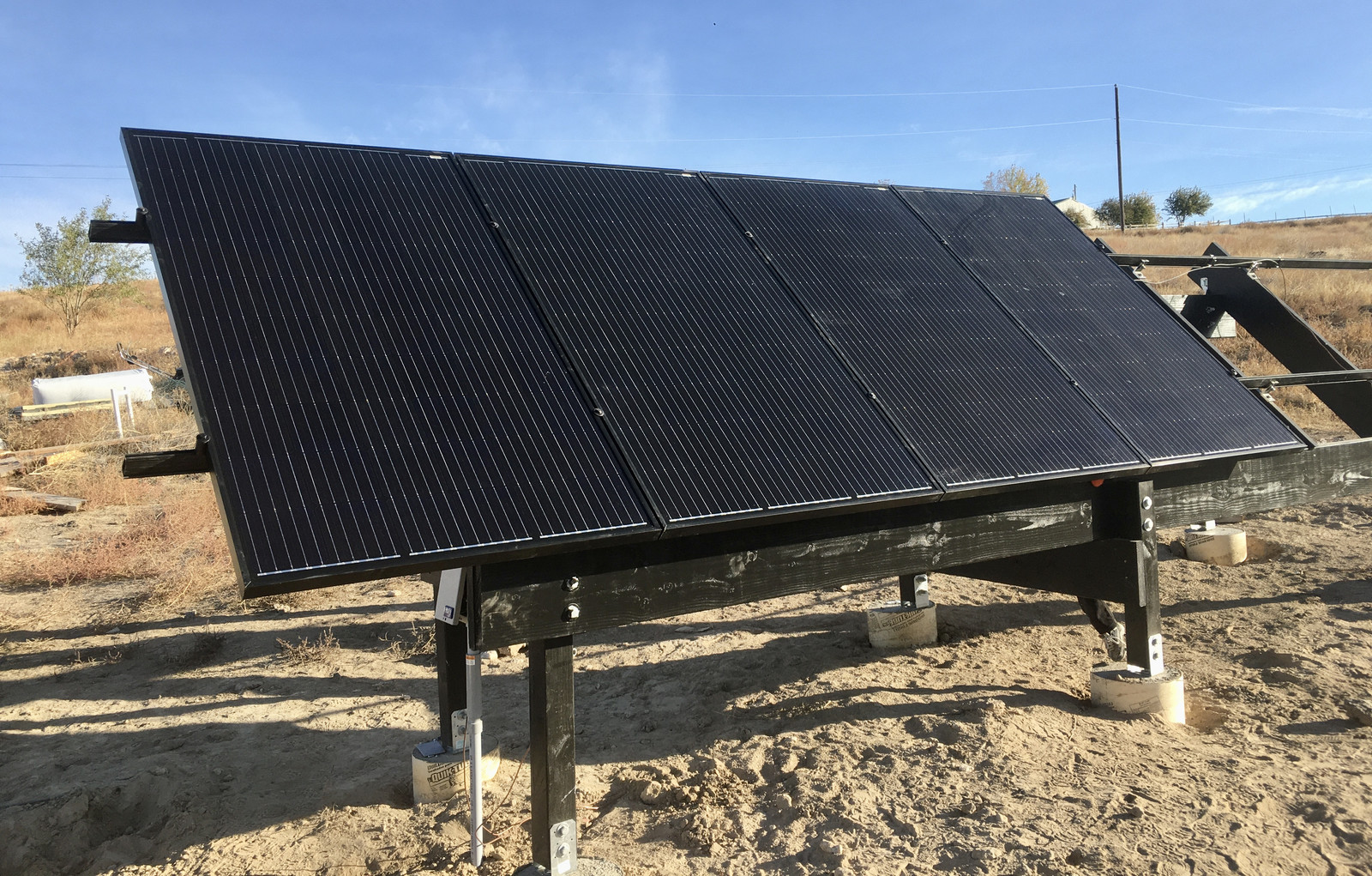In any case, with 48 panels on the main frames, I’m adding another 6 on the south frame for balance of system production. Nothing fancy, just six panels, facing south, at a 45 degree tilt. This set of frames is to the north of the main set (shouldn’t ever see partial shading from the As), and it was a rather quick build.