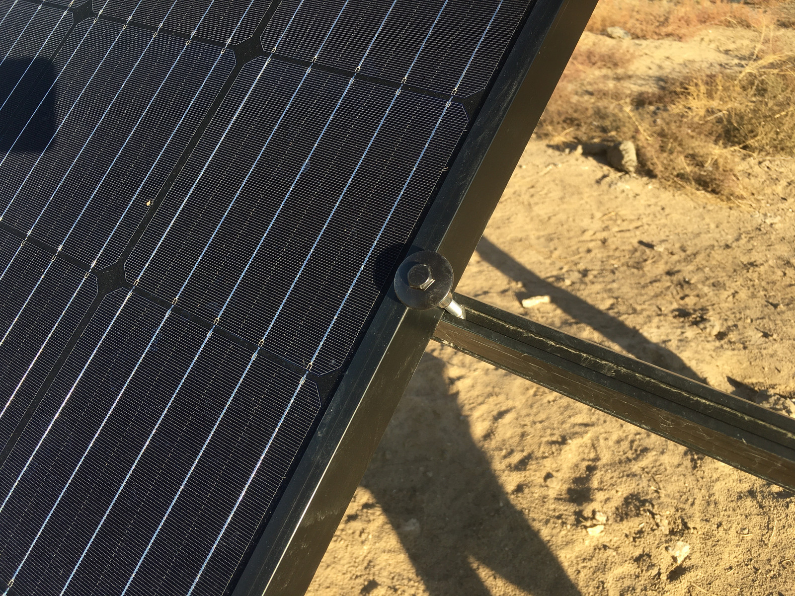 I talked a bit more about the Iron Ridge fastening equipment in a previous post, but these slick gizmos are how the panels get secured. These “umbrella cap” bolts clamp down on the panel sides, cutting into the anodized finish to create solid grounding between the panels and the rails. The whole Iron Ridge thing is very, very slick, and I’d wholeheartedly encourage it if you need to mount panels!