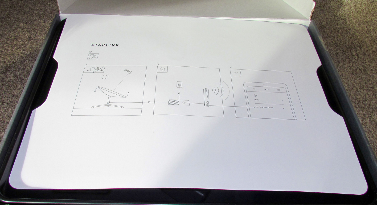 Inside, there’s a set of setup directions. Point dish at space. Add router. Connect with phone. That’s actually about right for setup - it is one of the easier setups I’ve ever dealt with for internet, though the cable is a bit stupid (I’ll touch on that later).