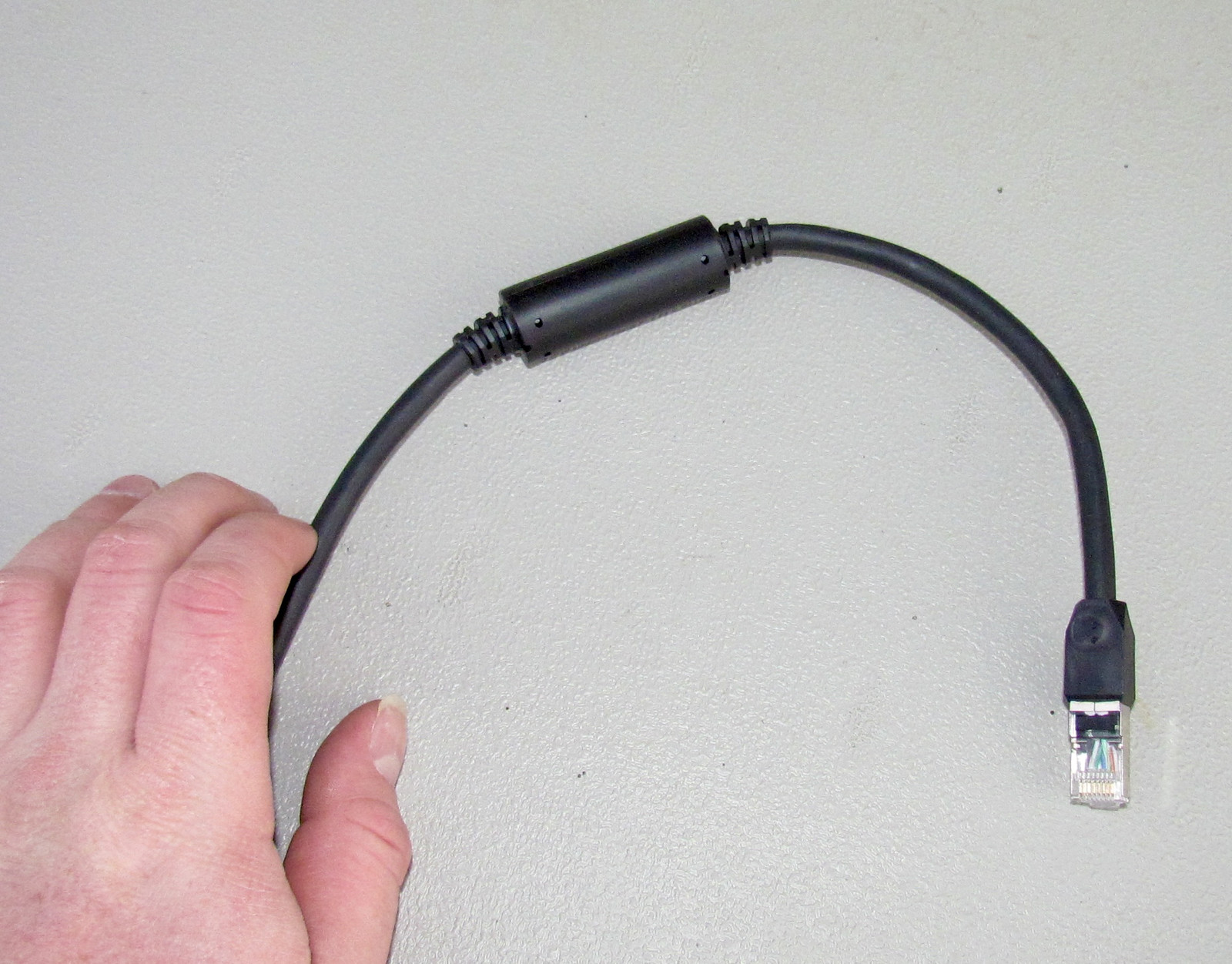 Getting it into my office proved a challenge. My hands are not freakishly small - this is just a gigantic ethernet cable. Over on the end you plug into the POE brick, there’s a huge choke. Can you remove it? No. Can you snake the cable through a hole the other way? No. You seriously need a hole big enough for this choke, which is a real problem for a lot of places. Punching a small hole for a CAT5e or CAT6 cable is easy, and a little drop of silicone seals up the penetration. This? You have to drill about a 3/4” hole that then passes a much smaller cable. You can’t just goop it up like you can most network cables (having worked for a WISP before, I’ve helped with plenty of installs, and this is, by far, the worst I’ve seen for an external connection).