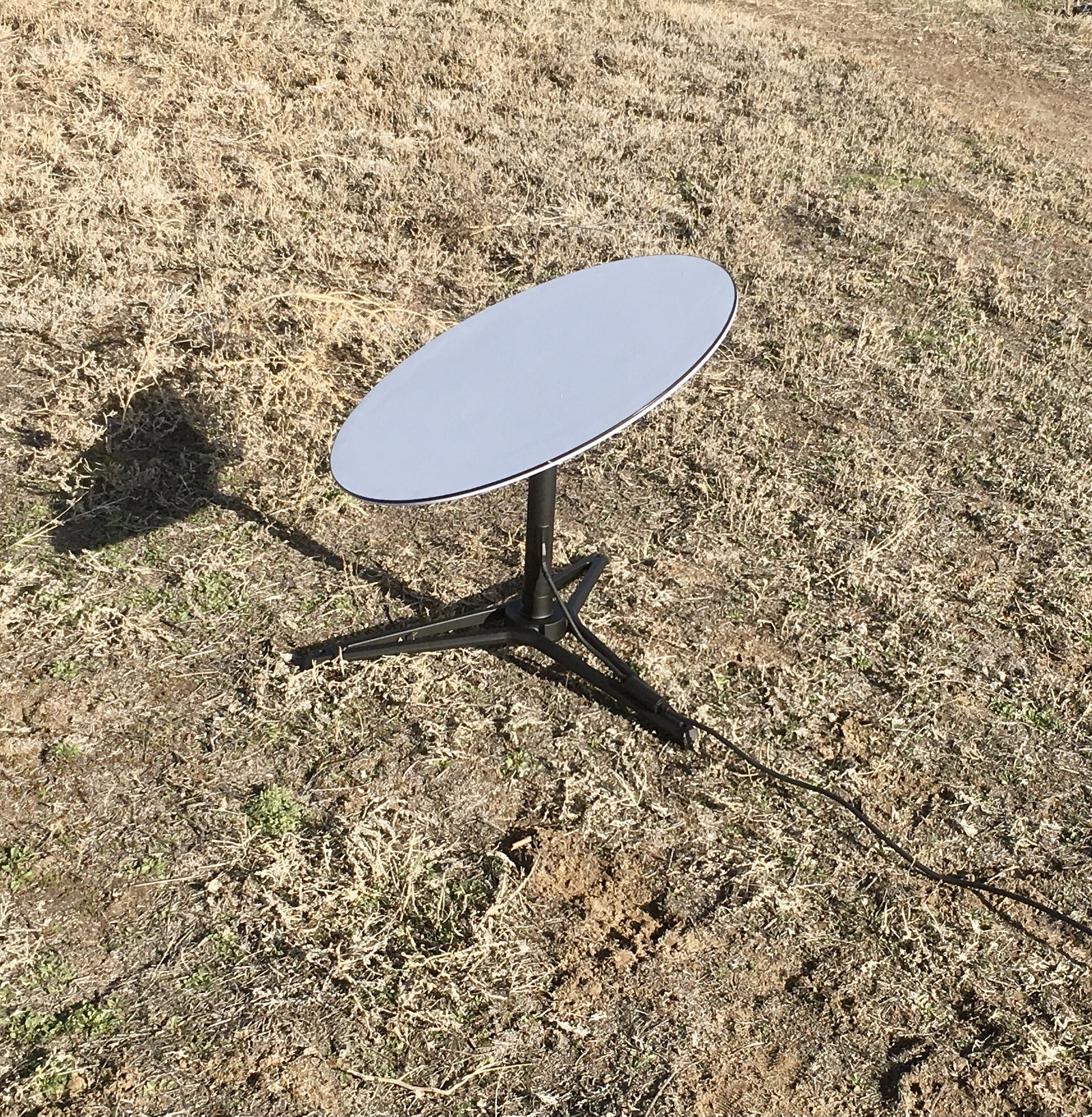 For the initial setup, I set Dishy out in the field by my office. It’s got clear line of sight to most places, no real trees to deal with, and, importantly, lets me mess with the dish over in my office where I have more equipment than over at the house.