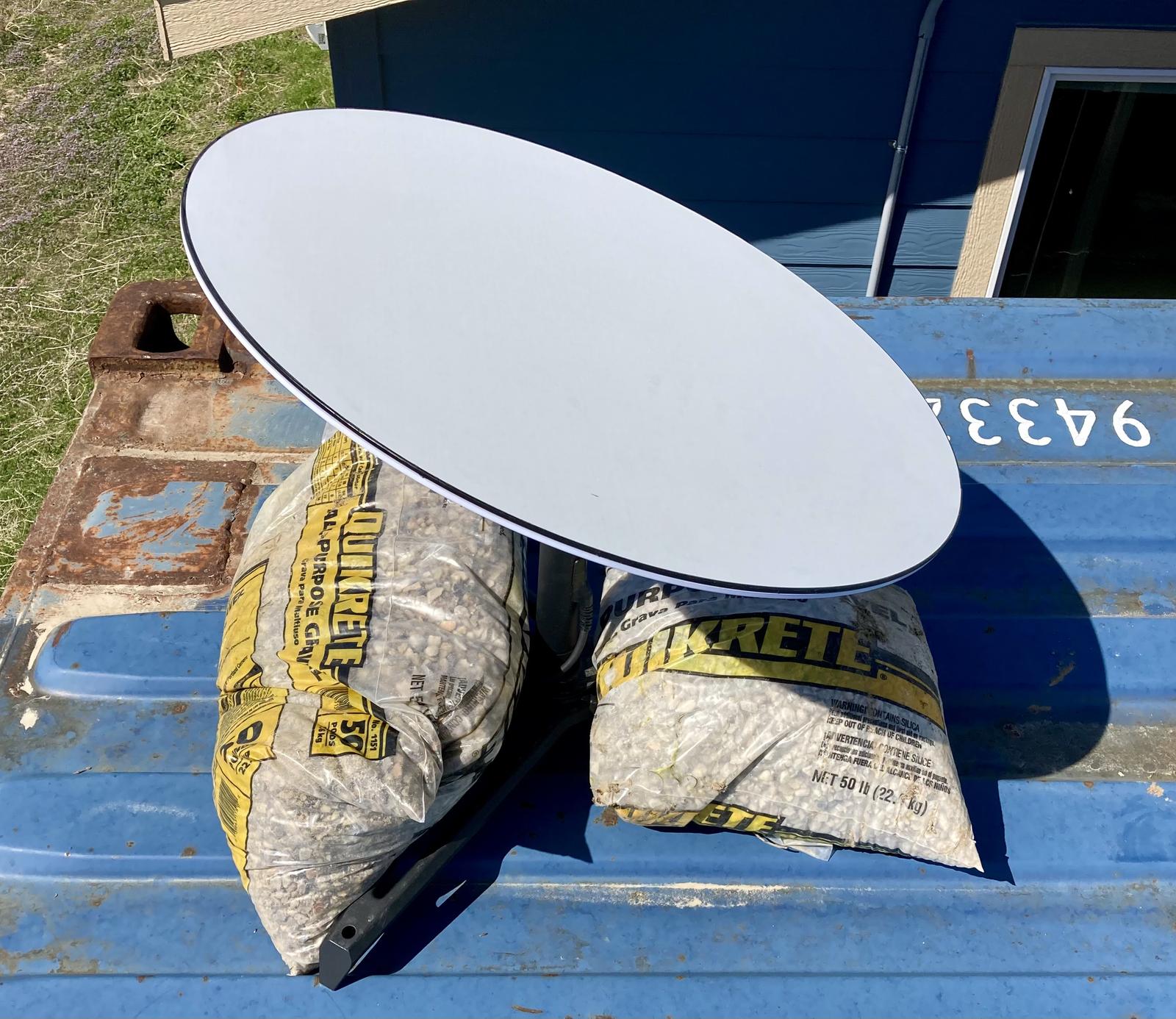 I moved Dishy over to the corner of our shipping container, where it can guzzle electrons from the grid while it fires radio waves back and forth to space. The bags of gravel are anchoring it in place - the wind this spring has been impressively strong, and I’d rather it not go flying off. The tripod is quite stable, and it’s in a turbulent little corner of airflow, but… still. With the gravel, if it flies off, many other things have lifted off first.
