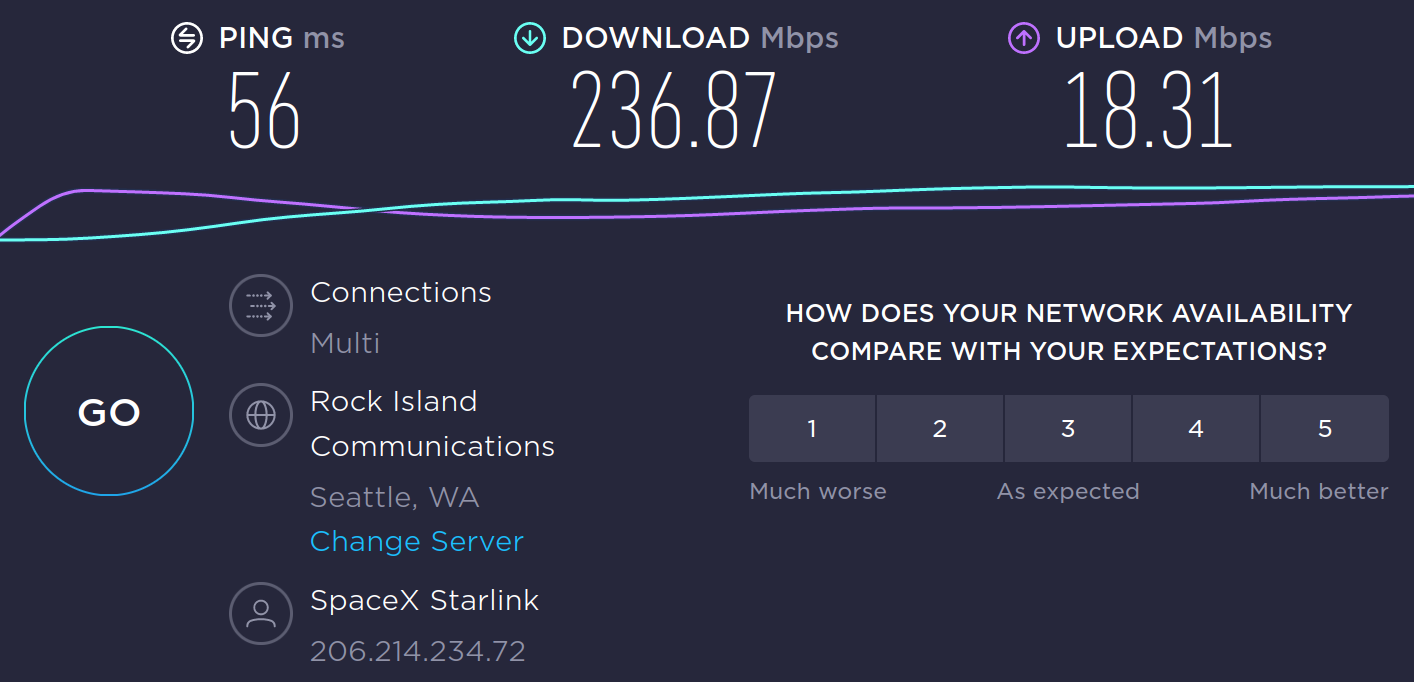 And if you’re on something like a LTE connection, with a booster to find some signal? Great. You want Starlink if you can afford it. Sign up now. I promise, it’s an improvement.