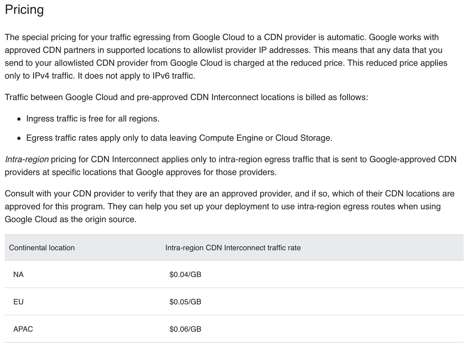 But, in the process of moving stuff around, I discovered an even better perk of using CloudFlare with Google Storage - peering arrangements between companies mean that it’s actually less expensive to use the cloud storage than it would be serving directly to the internet! In the Google Cloud CDN Interconnect Overview, traffic in North America going to CloudFlare is only $0.04/GB. Normally, going out to the internet, it’s $0.12/GB. That’s a third the cost - and I’ve got less traffic because CloudFlare caches some of it! This really helps reduce the costs of operating the site, and if you’re looking at doing any sort of statically hosted site, I’d suggest looking awfully hard at this setup.