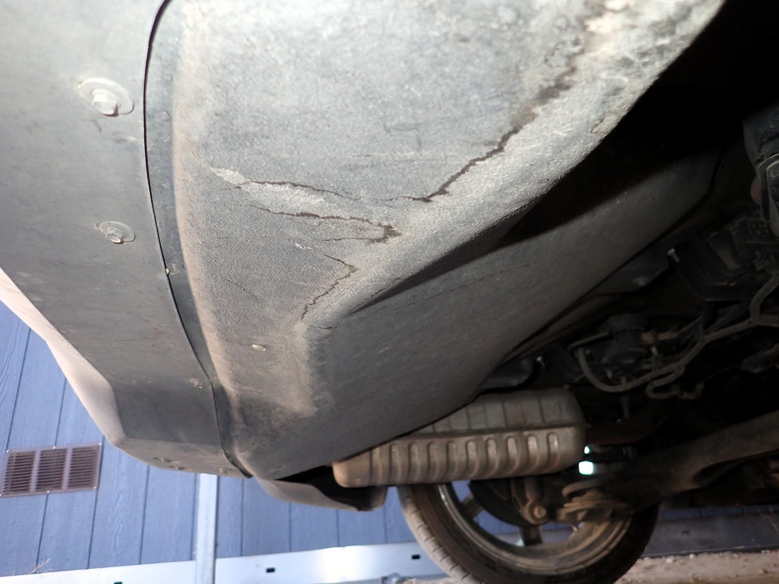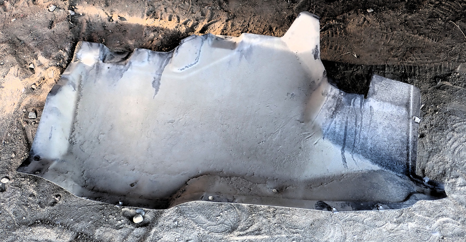 This is what the rear aero shield looks like, dropped down and with a couple pounds of grit and rock removed. I have no idea how some of that debris got up in there!