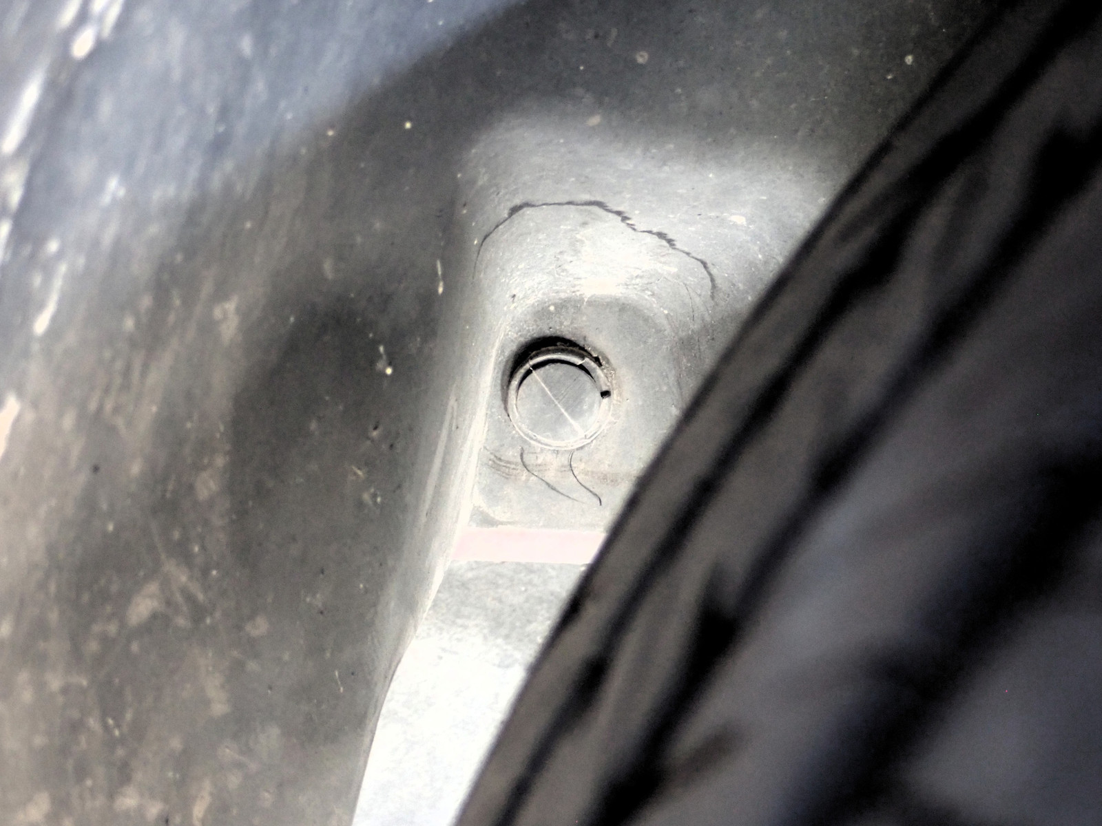 There are a bunch of little T20 Torx fasteners in the wheel wells too that have to come out. You can see two down at the bottom, there are some up along the outside edge, and one annoying one inboard of the wheel.