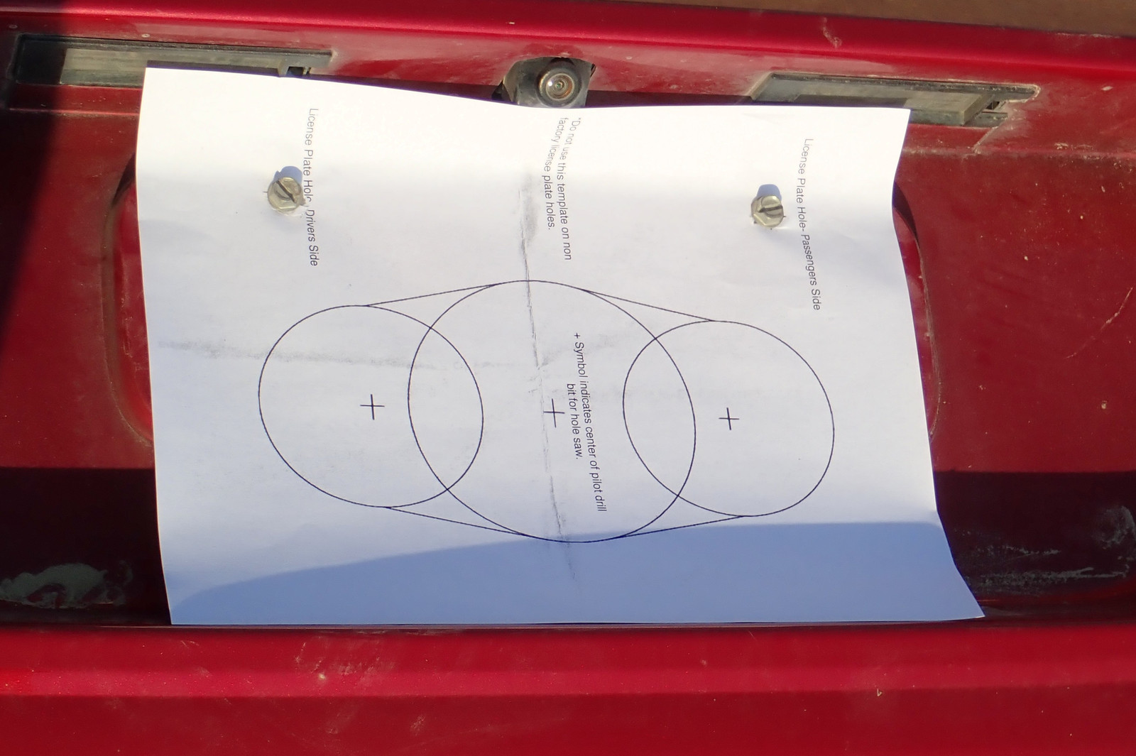 The real catch to this install is that you have to make some rather irreversible holes in your car for the receiver to poke through under the license plate. There’s no opening there to use - so you have to make one with a couple hole saws.