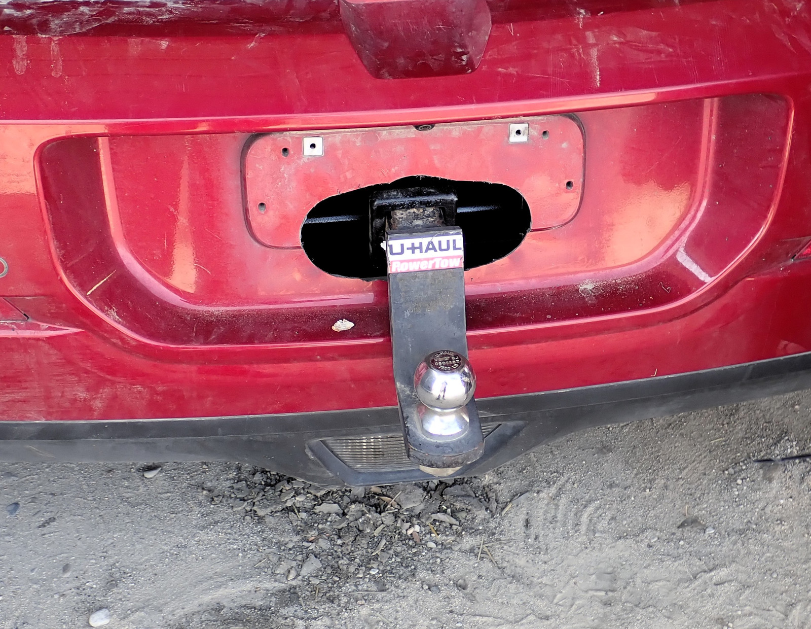 The receiver simply sits over the existing bolts used for bumper mounting. A couple of the holes are slots, a couple are rounded, so the whole assembly is rather self centering. You can see, in this shot, some of the welding involved in holding panels together - it’s a sort of zig-zag stitch of welding. However, the important point here is that the car really isn’t designed for an awful lot of “pulling” loads here - it’s designed to take bumper loads, which are explicitly compression. The hitch is rated for a 2k lb trailer, but be gentle. This isn’t a receiver mounted to the frame rails of a truck!