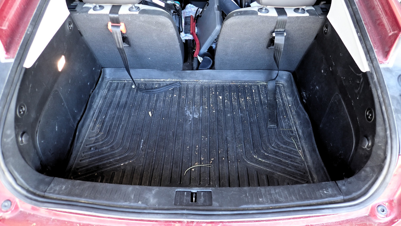 With that out of the way, the main rear hatch carpet is visible - complete with plenty of trunk liner markings in the carpet.