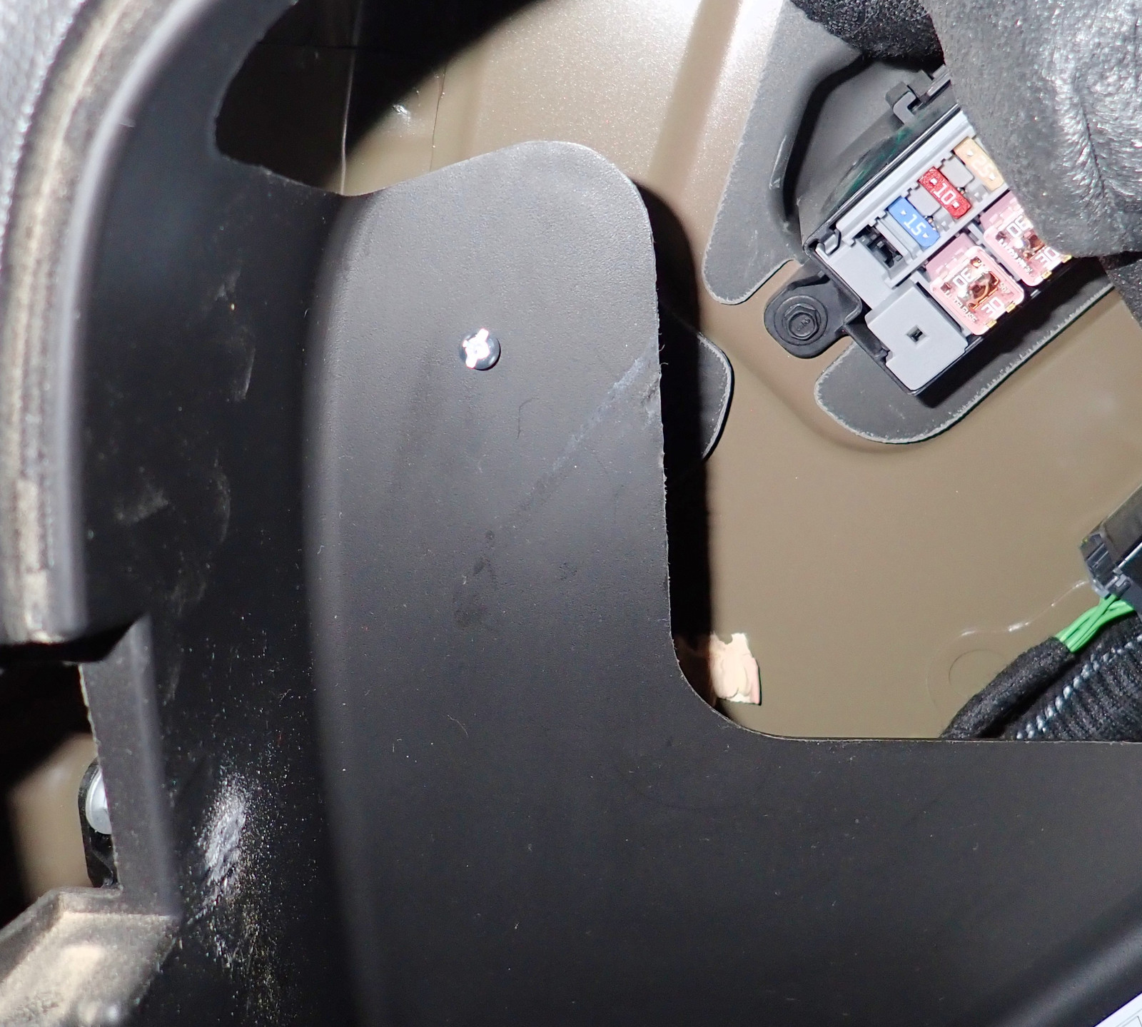Finally, pull the side trim away so you have some room to work. You don’t need to remove it - just bend it away from the side of the car. There’s enough space to work. Some of the stuff back there (the fuse box) is accessible through the left cubby, behind the air compressor that replaces the spare tire. I’ll be making very good use of that space!