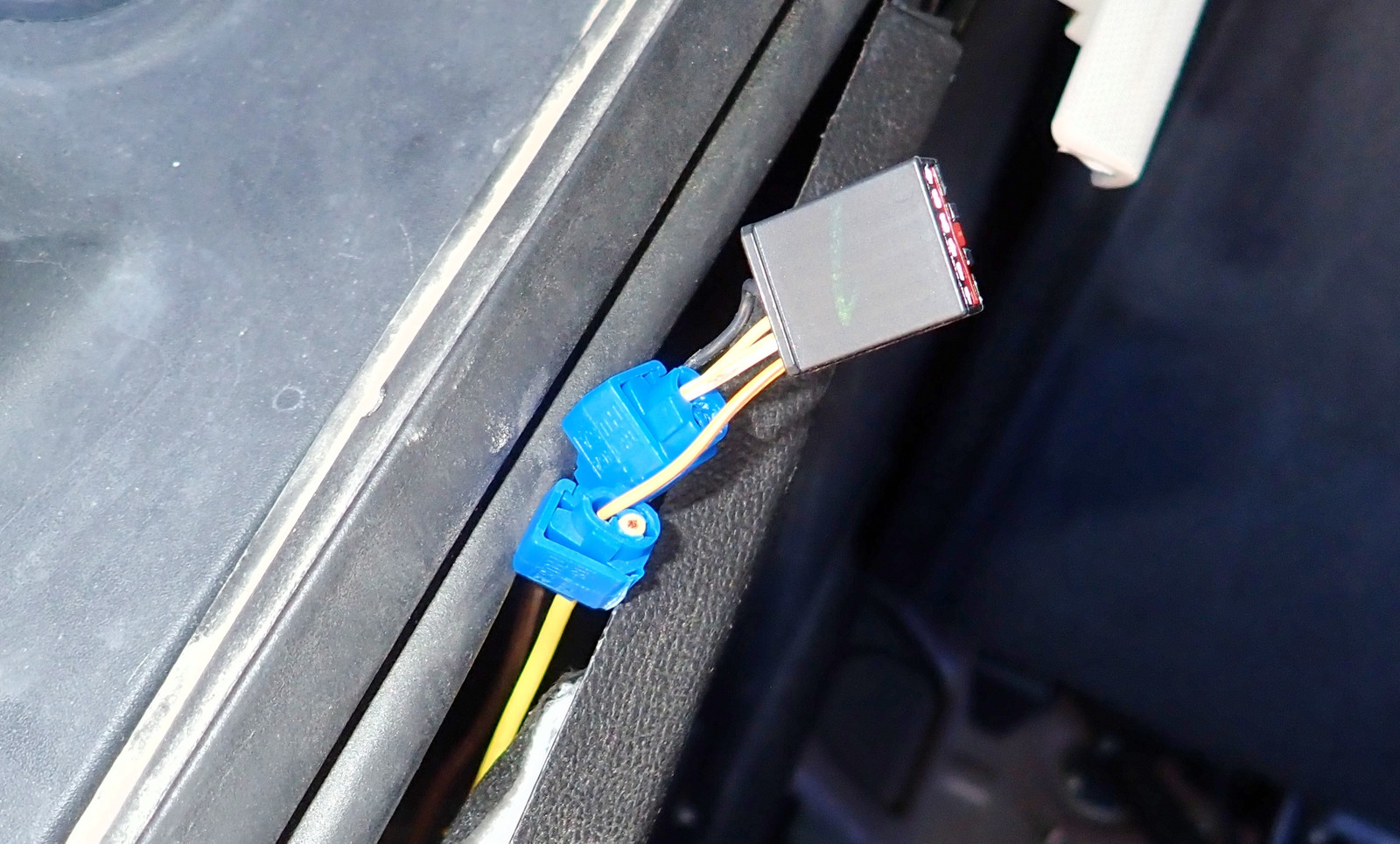 The kit comes with some standard vampire taps, and once you remove a bit of the wiring loom, there’s plenty of space to tap into them.