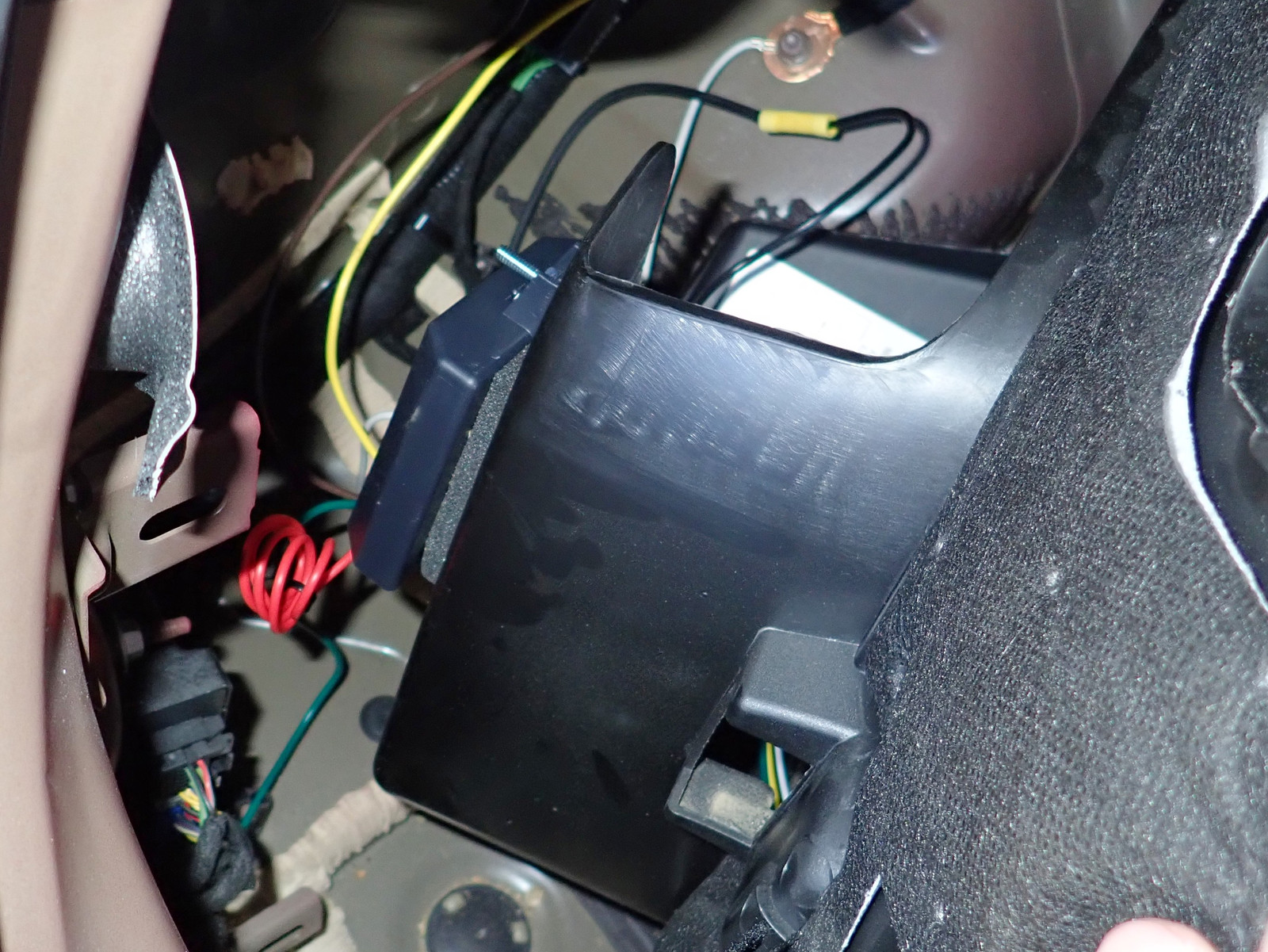 The converter kit comes with some mounting double foam adhesive, but I decided to add a bolt, just to help keep it in place. Is this needed? After feeling the adhesive when mounting it, no. Definitely not. If that adhesive comes loose, there’s probably not much car left to worry about.