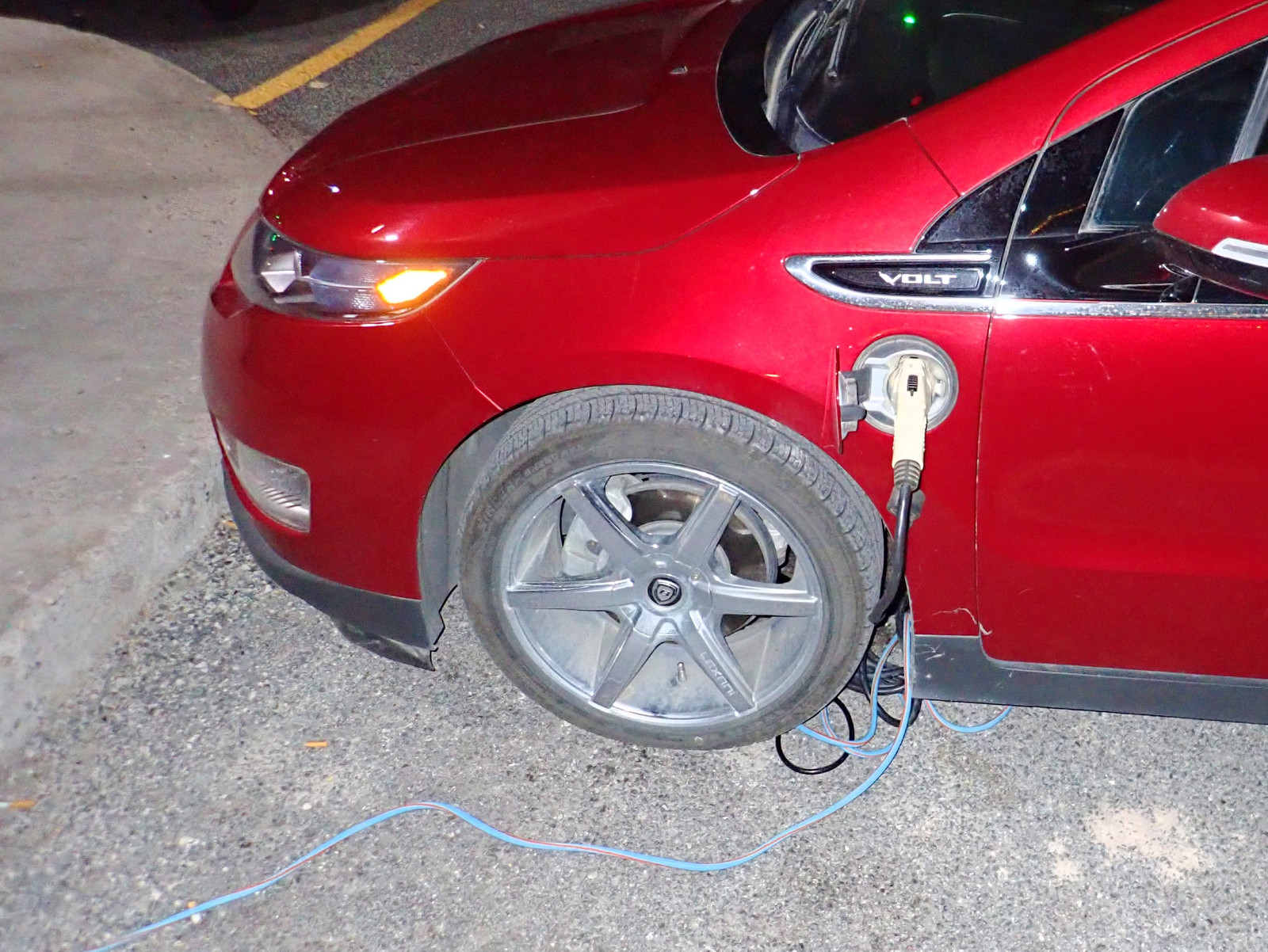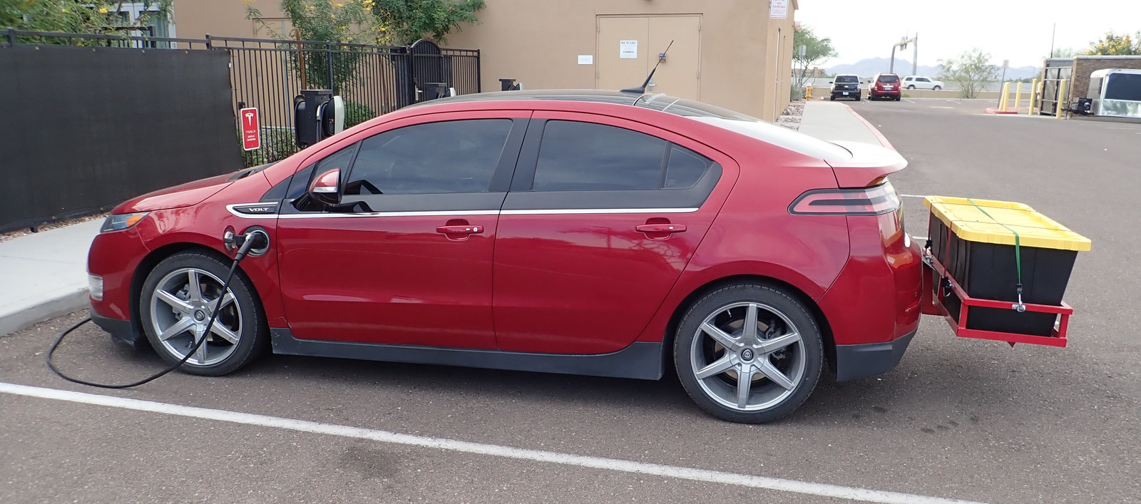 On our last day there (in the land of “Tis Better to Seek Forgiveness than Ask Permission”), I went into the desk of this hotel, verified that they weren’t owned by the same company as the hotel we were staying at across the parking lot, and left a $5 on their desk for charging. I’m fairly certain this confused the clerk to no end, and I’ve no idea if they have any way to actually route that properly, but I put a couple days worth of power in the Volt from their charger, so it only seemed fair!