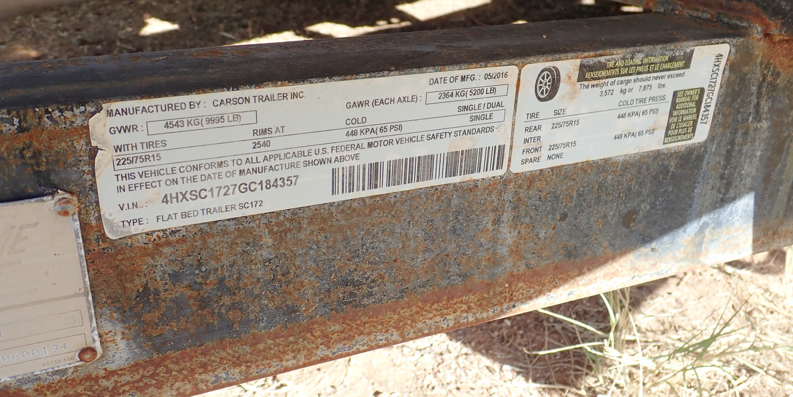 The actual trailer frame was built in 2016. It’s entirely unclear to me what the gap between the 2016 and 2018 dates are. Was the trailer built earlier and the tank upgraded? Was it new old stock? Is it part of the scam (which was well underway by this point)? No idea.