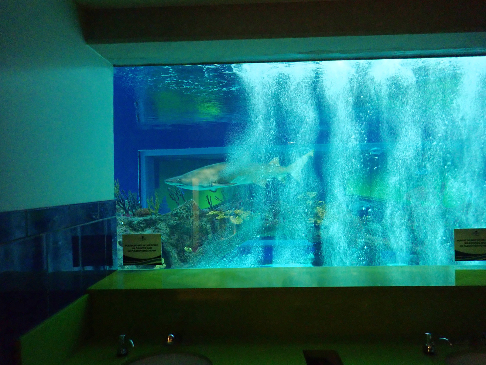 On entering the aquarium, it’s strongly suggested that you go check out the bathrooms in the lobby area - because instead of a mirror behind the sinks, they have a shark tank.