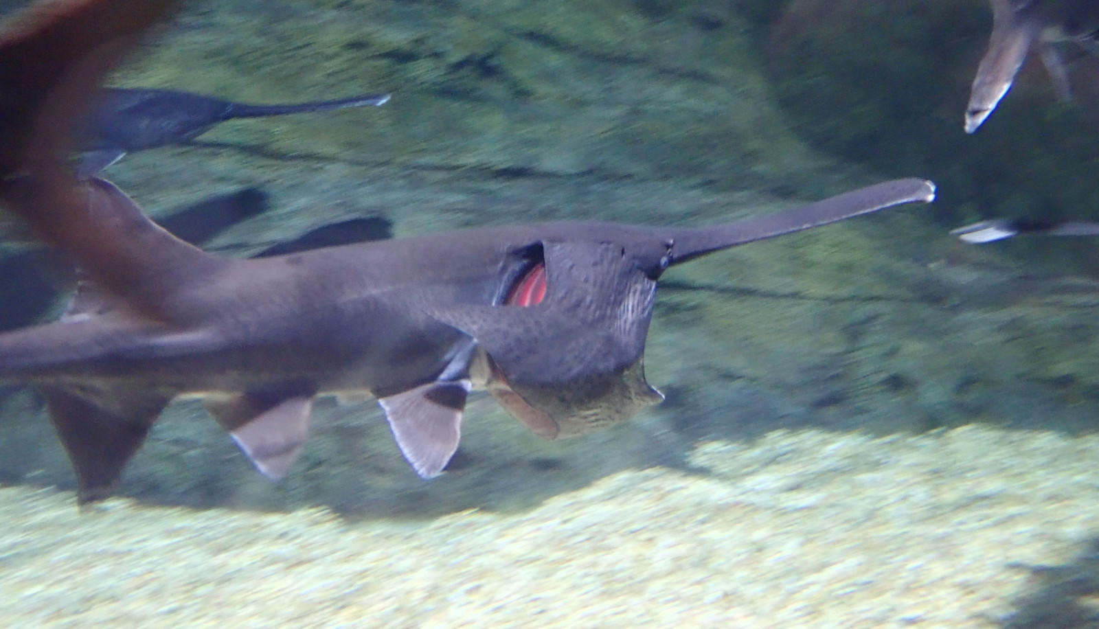 We wandered through the aquarium, and got to see a number of interesting things - including some feeding times. These fish open their mouths and the whole front of their body turns into a passthrough filter sort of device - huge openings, huge waterflow, and snacks get filtered for consumption. Unfortunately, they do have some trouble getting food off the bottom of the tank with that snout…