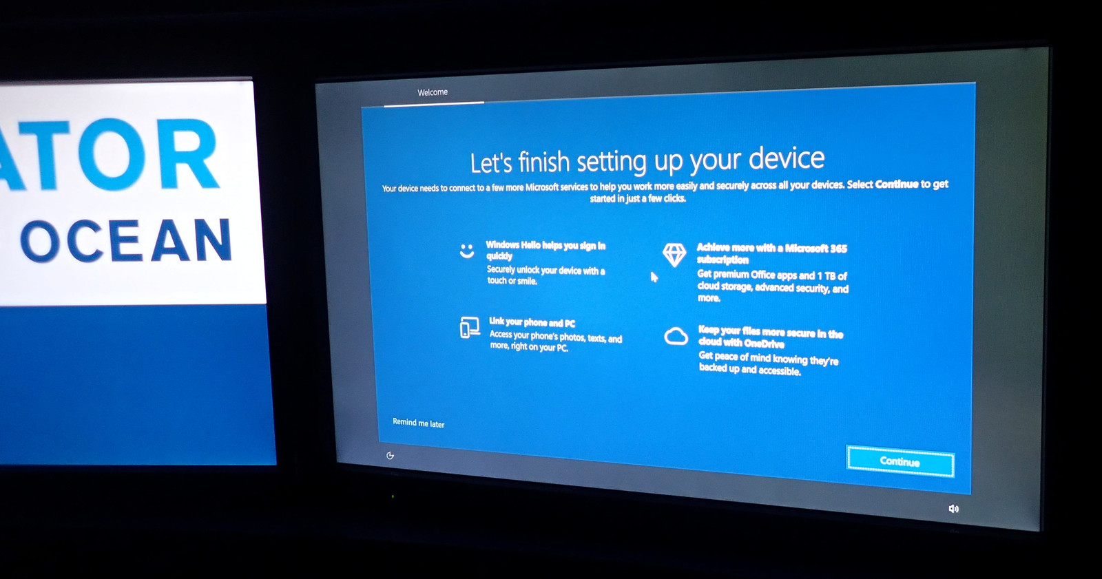 And, finally, back at the hotel, we found both of the kiosk PCs badgering the user! These PCs are running some “anonymous use, clean the system and wipe the user data when you log out, auto logs people out” software - but that doesn’t stop Microsoft from displaying this, obviously in conditions when it never used to display it.