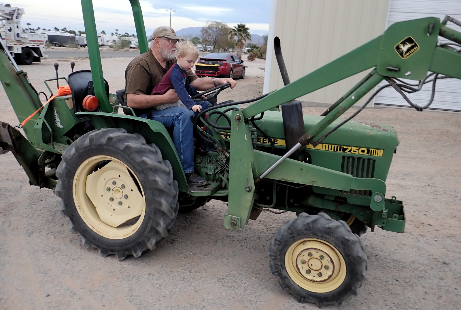 Finally, my son is amazingly good at talking people into tractor rides. Or, perhaps, at badgering people until they offer a tractor ride. This tractor has more levers than our tractor - and they make the bucket move! He had a grand time manipulating the bucket controls! My social circle certainly considers owning a tractor to be a normal part of life…