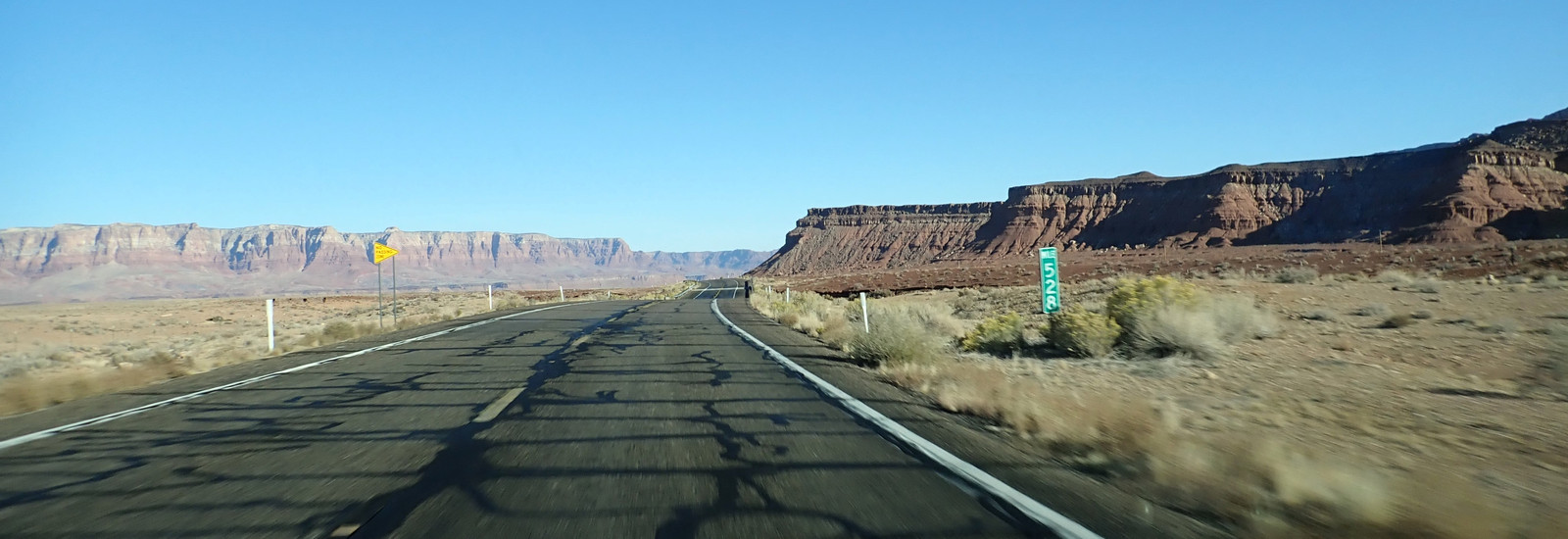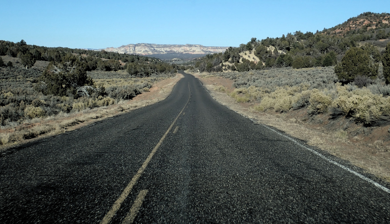 On our second day, we ran into some of this - long, straight road, twisting off into the mountains. See where the road enters the hills?