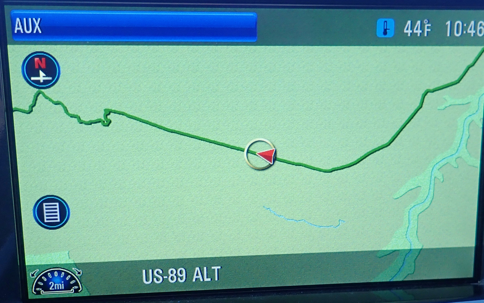 Can you guess where, on the map, that transition happens? Again, this is the sort of stuff we prefer to drive when we can. One annoyance I have with the Volt nav system is that it stops showing anything but interstates and huge roads as you zoom out, rather early. Perhaps, even if I zoom out fairly far, you might consider showing the road I’m driving on?