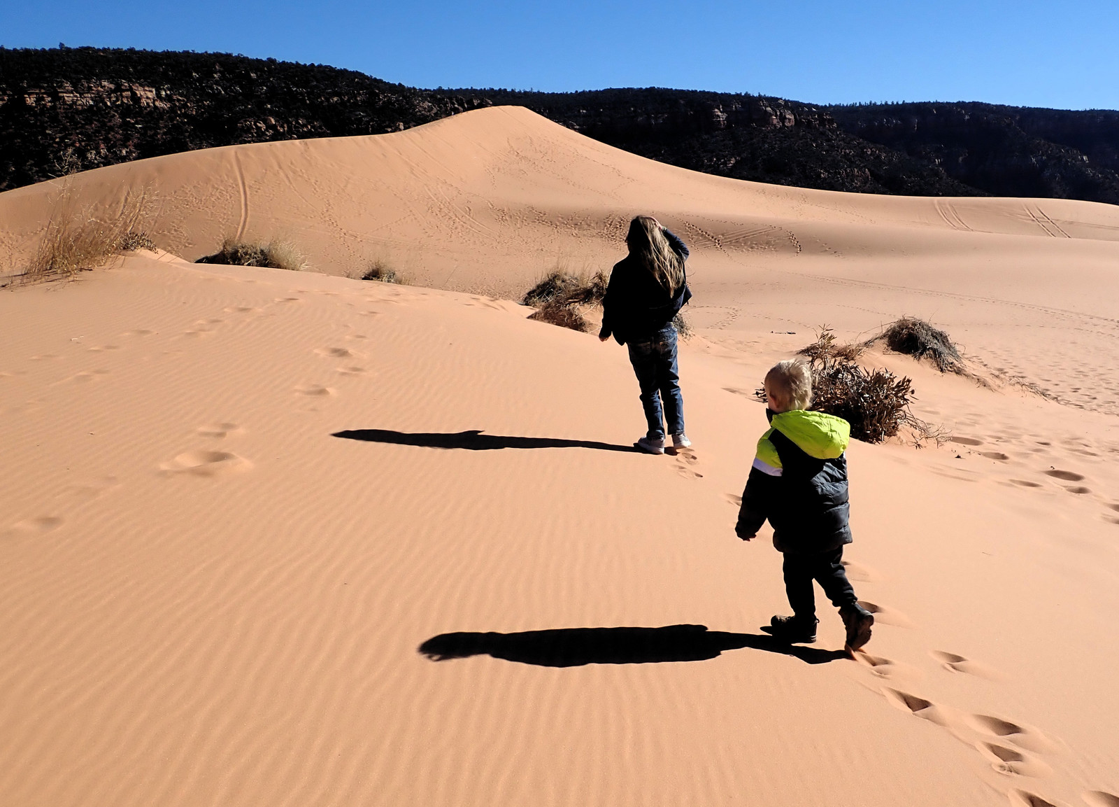 We also made a stop at the Coral Sand Dunes - which are, in fact, very pink. Sand dunes are a great spot to burn off energy, because kids (and adults) will chew through a ton of energy walking through soft, exceedingly round sand.