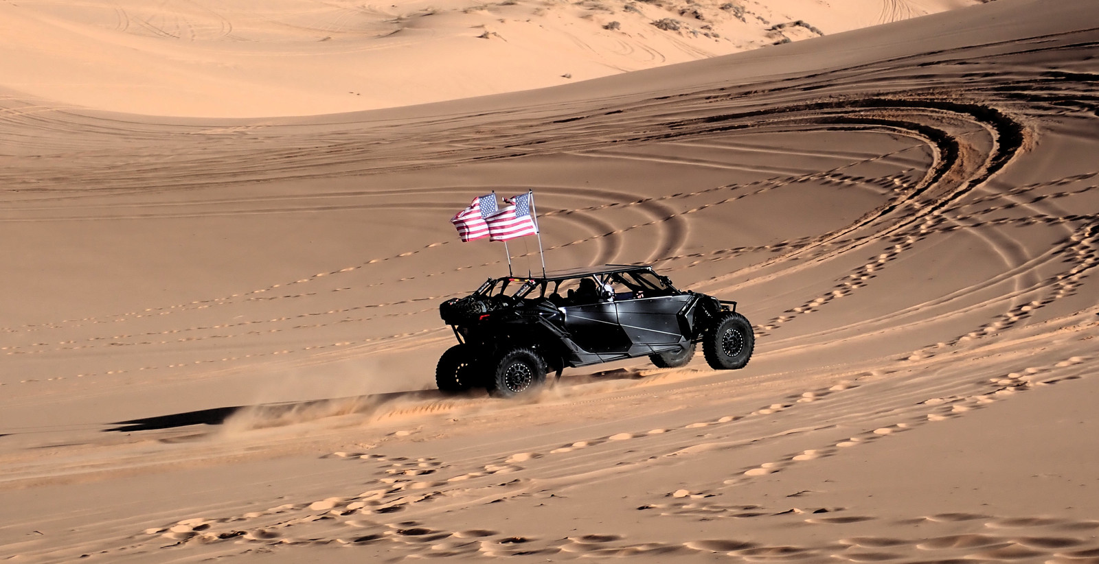 In addition to being a play area, it’s an off-highway vehicle area, so we saw quite a few ATVs and sand rail type vehicles blasting around, plus some old pickups that had been turned into offroaders. There’s an awful lot of money that goes into being able to carve ruts in sand dunes here.