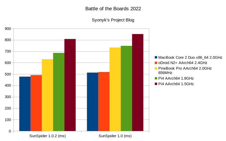 If you read this blog, you’re almost certainly familiar with the Raspberry Pi 4. It’s the latest in the Raspberry Pi Foundation’s $35 single board computers (though they’re no longer $35 if you want serious RAM - and I’m glad they’ve gone that way!). It’s got a quad core A72 cluster running at 1.5GHz, though the Raspberry Pi 400 clocks it at 1.8GHz on a slightly different chip revision. I’m testing at both speeds, because 1.8GHz is 20% faster than 1.5GHz, and is a sort of “daily driver” overclock for the Pi4. I’ve previously done testing at 2GHz, and it will run up there, but my personal Pi4 started being flakey at 2.0, even with 0.1V overvolt, so I backed it off.