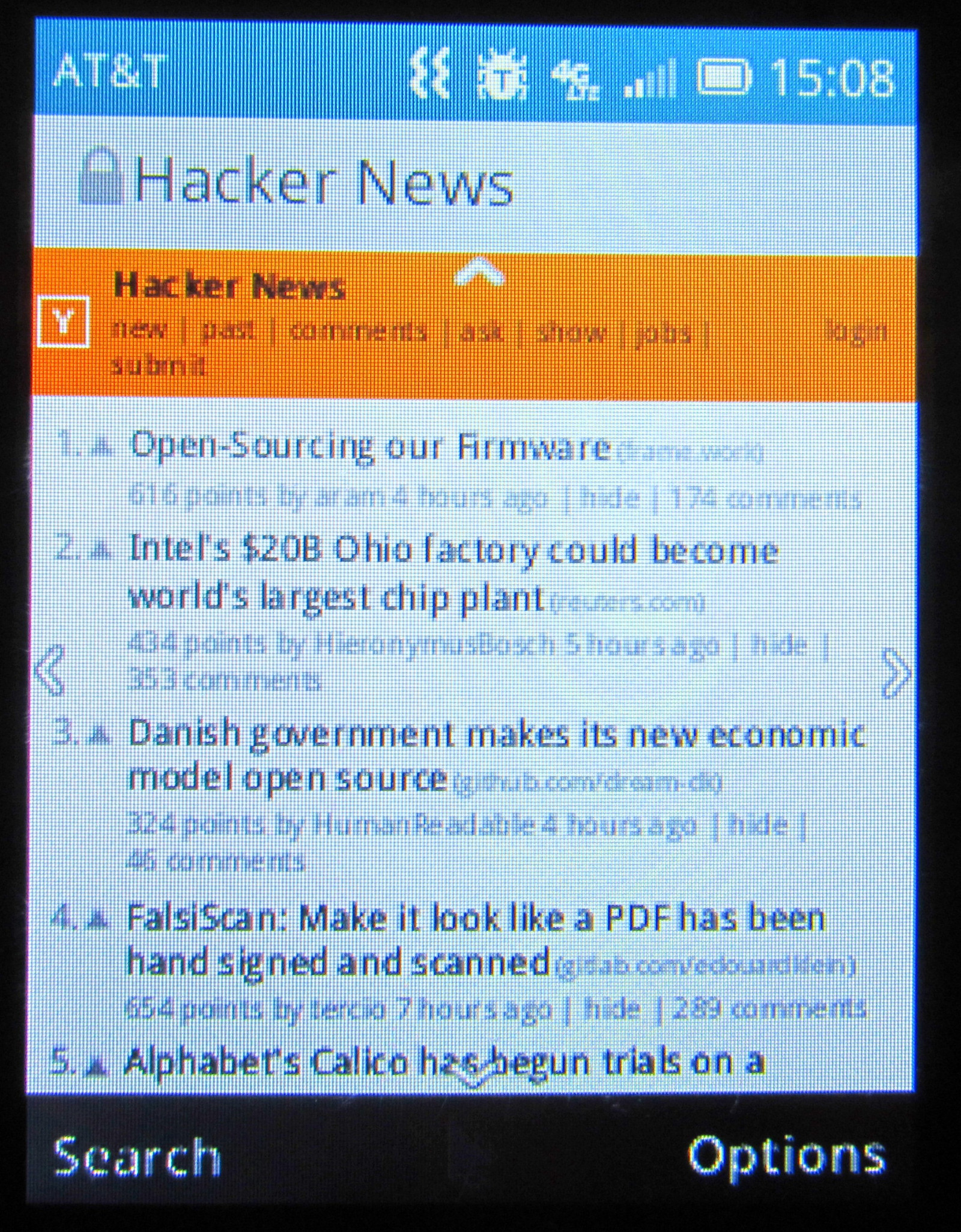 The browser (“browser”?) really isn’t capable of much more than some basic text rendering, unfortunately. It’s not a substitute for a smartphone browser, and even a 6 year old smartphone will run rings around this browser. It’s not completely useless, but it’s very close, and it doesn’t support tabs or anything like modern Javascript. I was hoping it would be at least partly usable, but about the only thing that works tolerably on it is Hacker News.