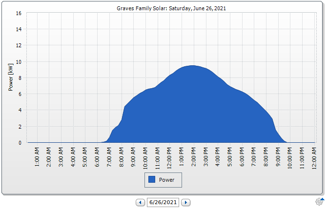Of course, if I’d installed single axis trackers (north/south running axles that rotate the panels from east to west, following the sun), per-panel production would be radically higher - and it would still have the long solar days in the summer. If you wonder why just about every utility scale plant has that arrangement, now you know!