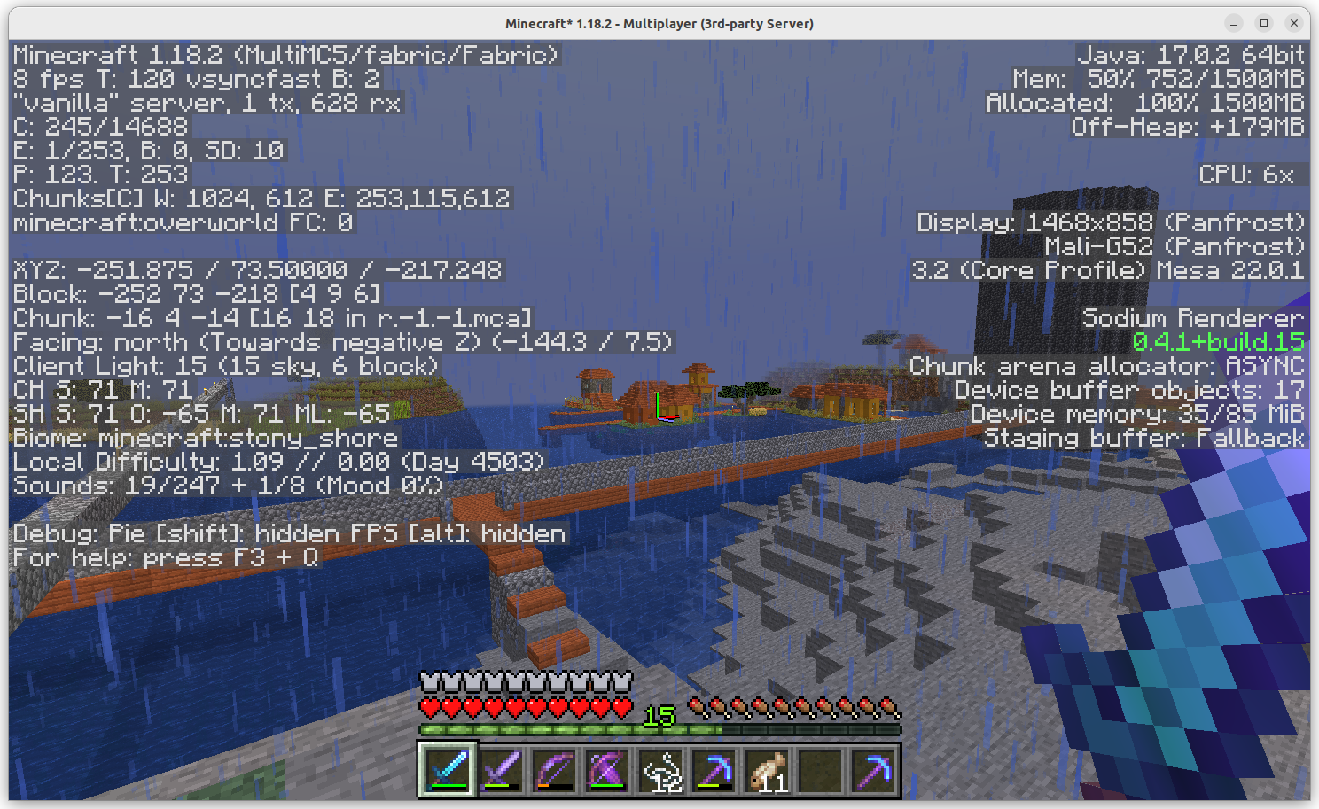 I’ve tested these instructions on Ubuntu 20.04, Ubuntu 22.04, and a recent 64-bit Raspbian, but the systems I use tend to have a lot of dev packages installed in the first place, so it’s entirely possible I’ve missed a dependency or two. Sorry, let me know in the comments what you’ve had to add and I’ll see if I can fix it. Minecraft is currently 1.18.2.