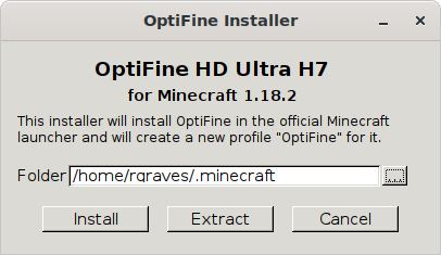 Once you’ve downloaded it, if you run it, it will ask where your Minecraft install is - and it’s really rather picky about what it looks for in the install before it will let you extract or install the file. If you’re running a reference Minecraft install with the normal launcher, it works great. Otherwise, it doesn’t - and I’ve no idea why they’re such jerks about not letting you extract the file otherwise.