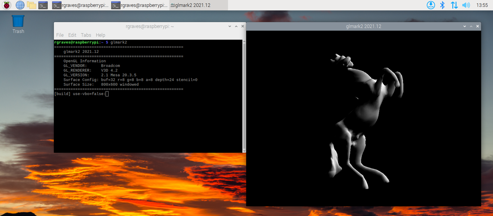 While I’m here, since I’m talking about graphically demanding applications on a range of small board ARM computers (even if the PineBook Pro is larger, it’s still an ARM SBC in terms of resources), I may as well do some benchmarking! For no good reason beyond “It looks cool and works,” I’m using glmark2.