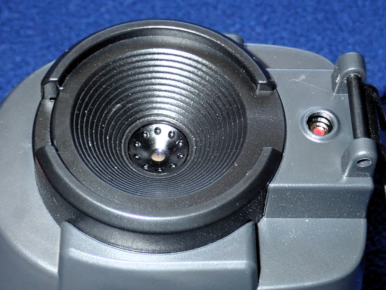 And, finally, sensors! The big one on the left (bottom) is the thermal imager, and the small round opening on the right (top) is the camera for visual processing. Anyone who’s sighted in a rifle will immediately see the problem with this approach - and you’d be right. There is an offset in the overlay of the two images, and while one can set the offset, it’s not automatic based on range. However, it mostly works.