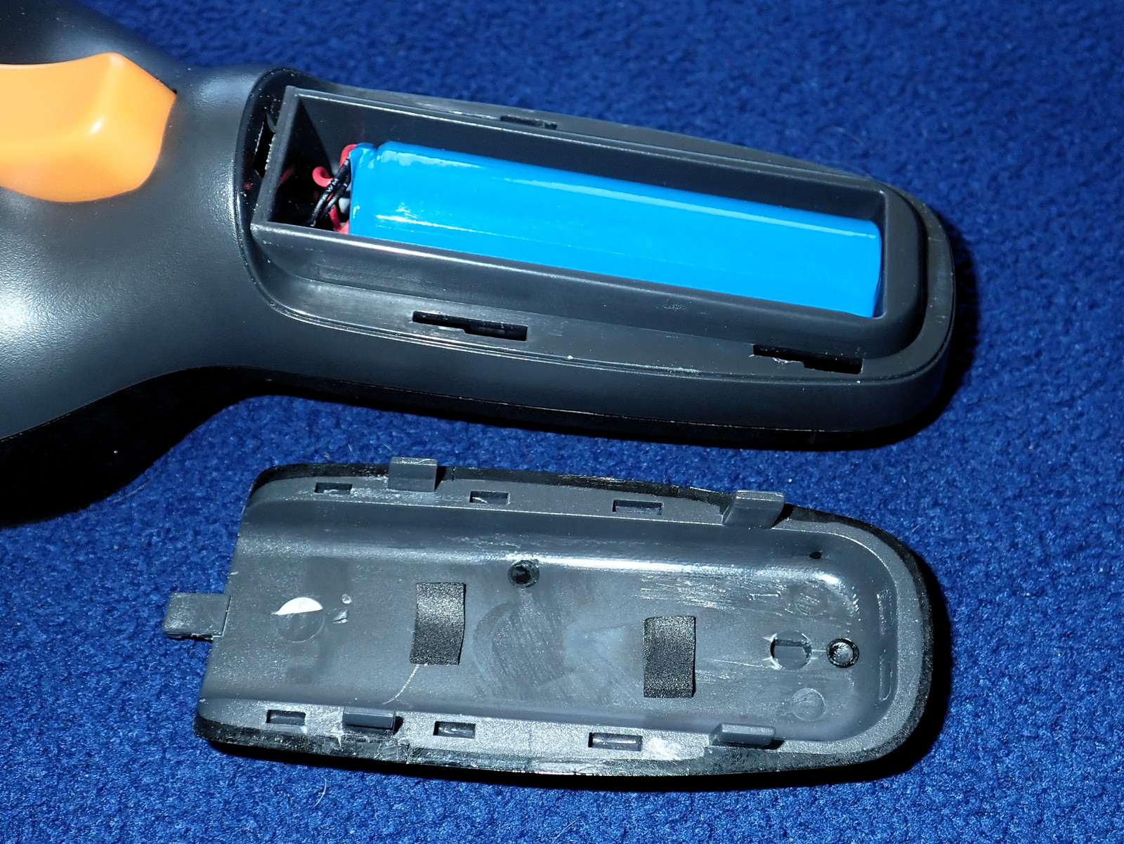 And, excitingly, an accessible, replaceable battery! Seriously, how cool is this? It’s a boring standard 18650, though the wiring is a bit funky (you’ll need to do some soldering to tabs to replace the battery), but it’s accessible. To access it, you slide the grip down away from the trigger, and it will unlock. You can also just pry on it and squeeze things out, but there’s no reason to do that unless you’ve no idea about how to release it because the manual doesn’t say anything about it. Anyway, I’m very, very happy to see this - it means that this tool is likely to last, because replacing a dead 18650 (even with a bit of custom wiring) just isn’t a big deal.