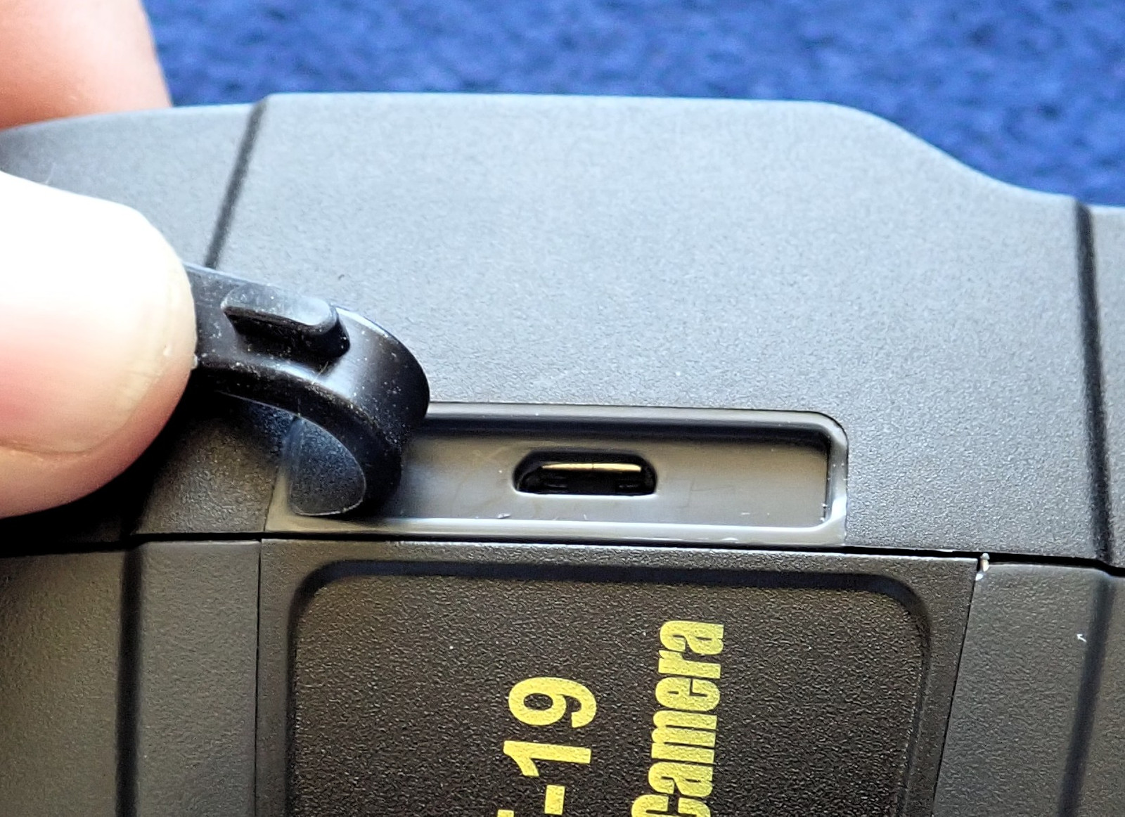 Finally, on the side, a rubber cover guards the micro USB port. I don’t like this port. It’s a bit too recessed for most normal USB cables - and while the unit comes with one that fits, a lot of your random micro USB cables won’t make good contact. Keep the cable that it comes with around. The problem is that the top end of the port from this angle is too close to the raised wall. Add a fraction more width and it wouldn’t be a problem in the slightest.